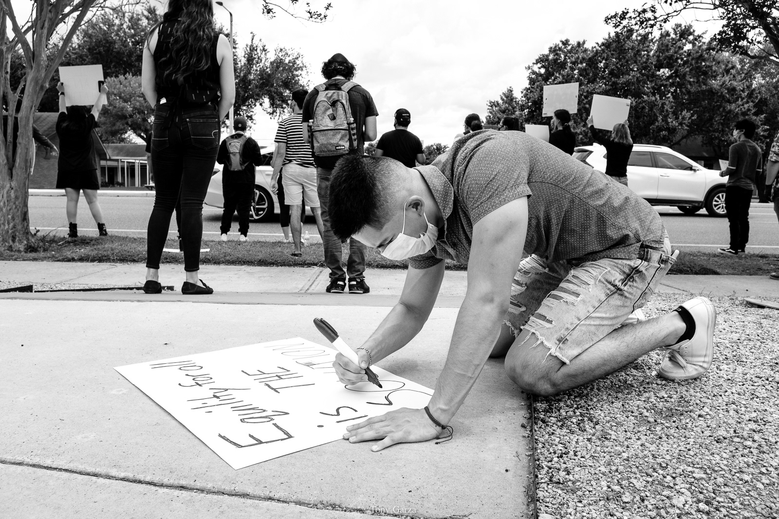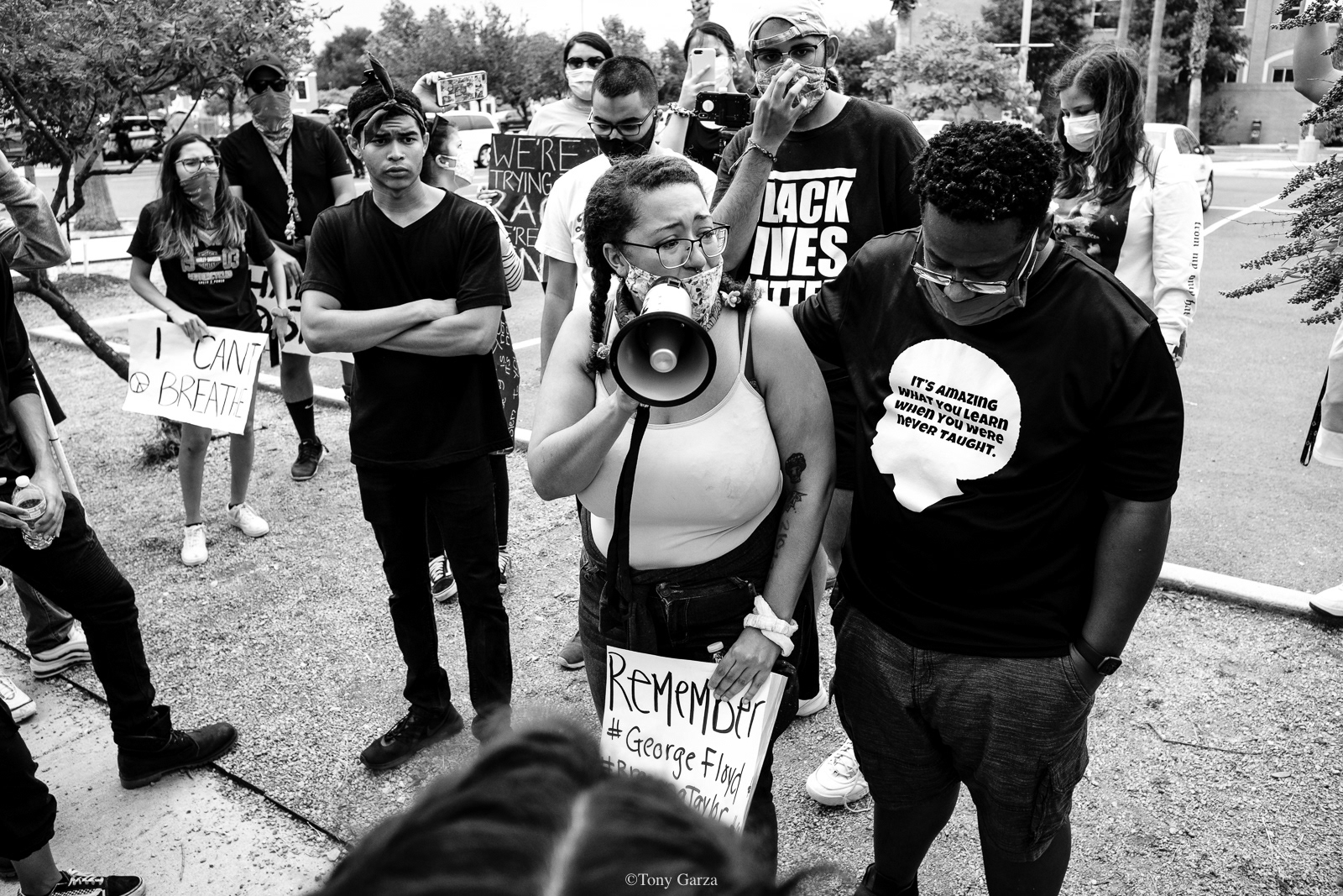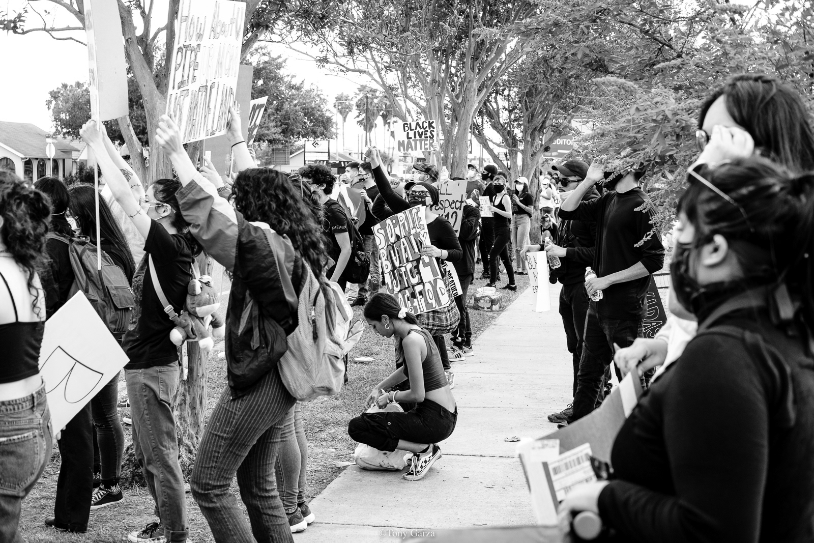 A diverse crowd peacefully gathers on this day, May 30, 2020, to protest police brutality and the deadly actions one cop in Minneapolis did to a victim known as George Floyd.