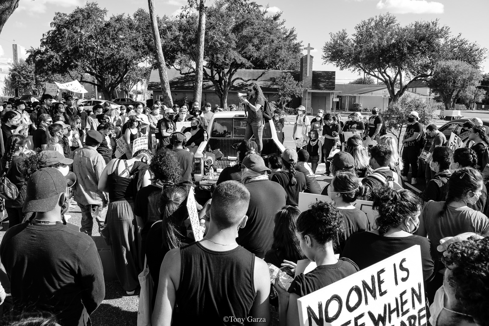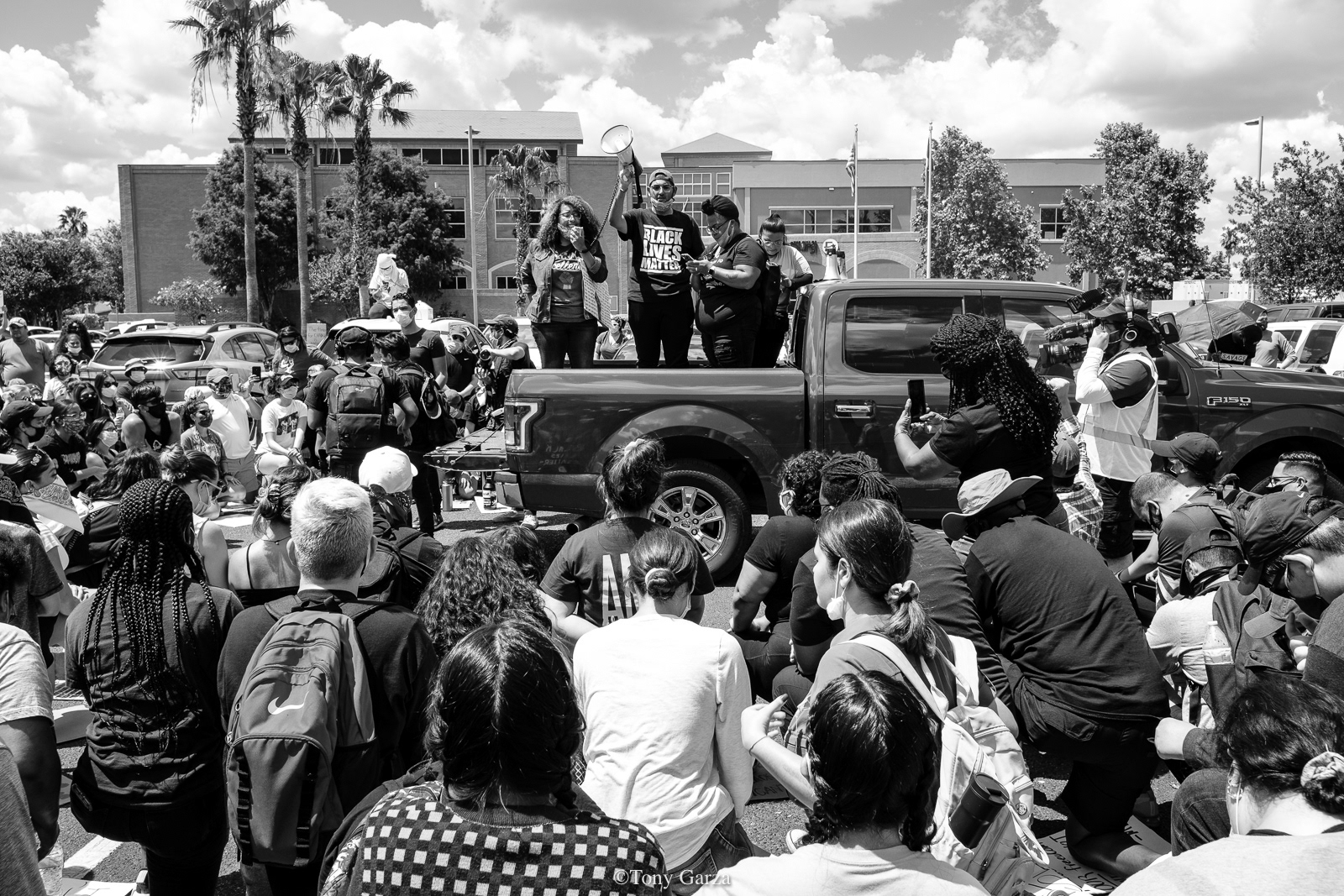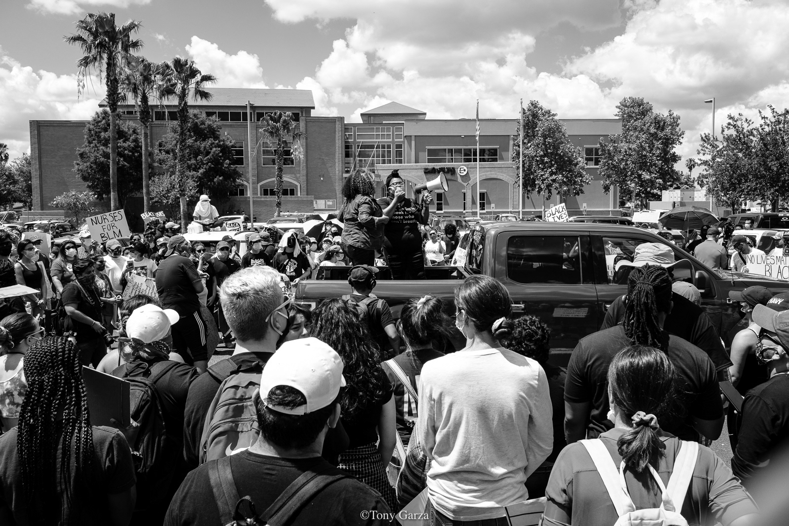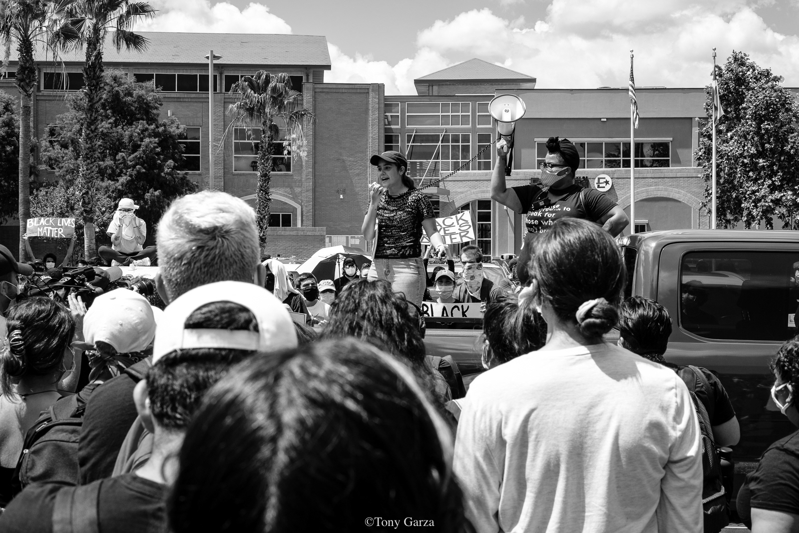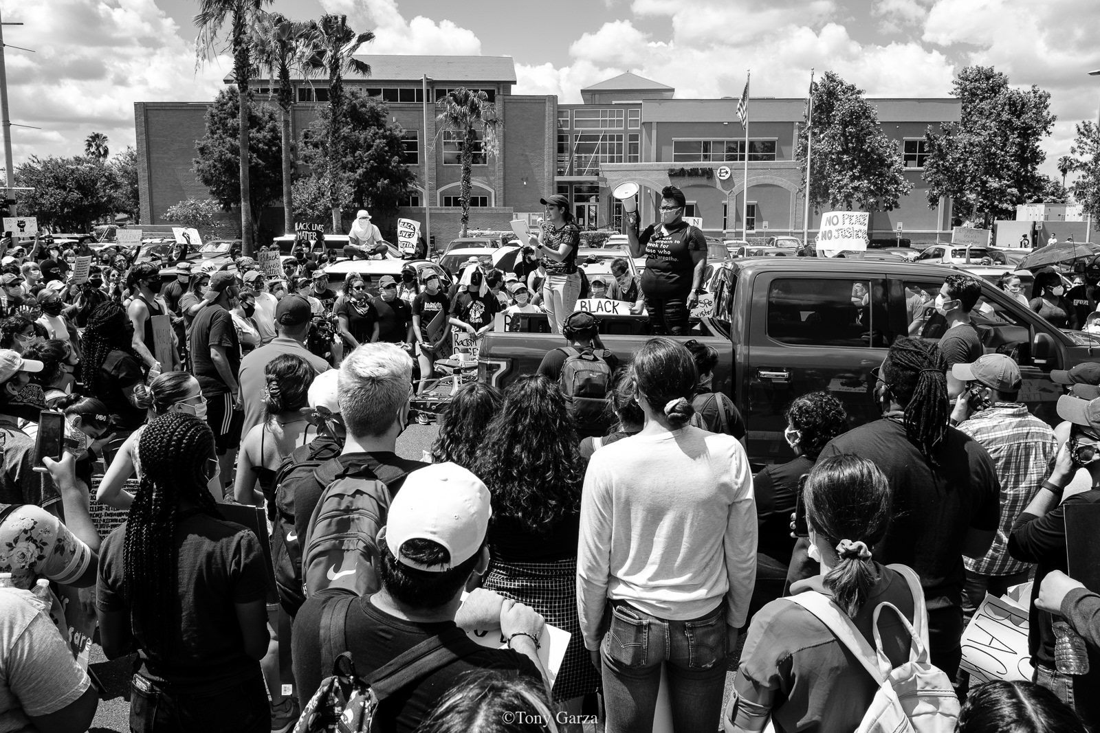A large crowd peacefully gathers at City Hall once again on June 06, 2020, to protest police brutality and the deadly actions one cop in Minneapolis did to a victim known as George Floyd.