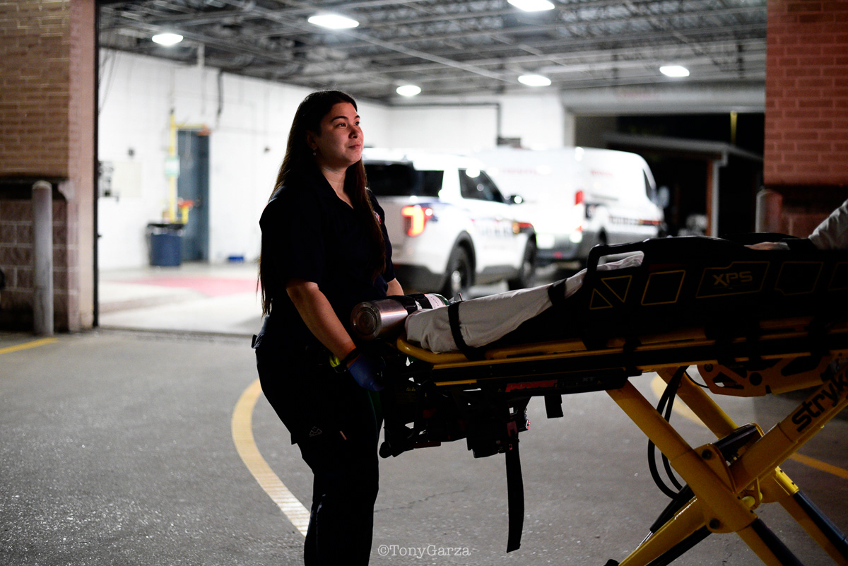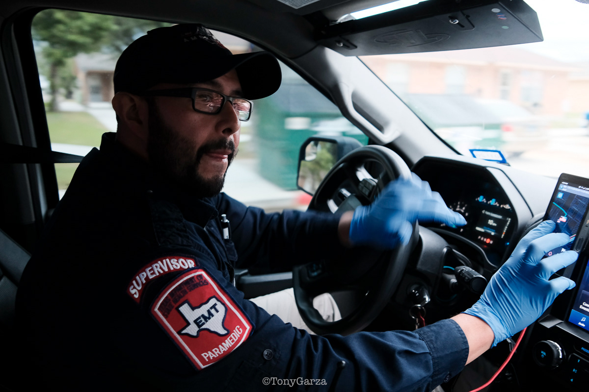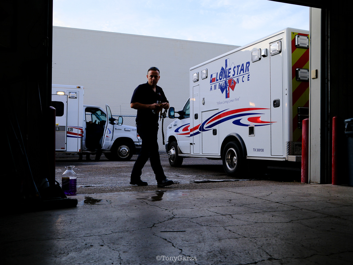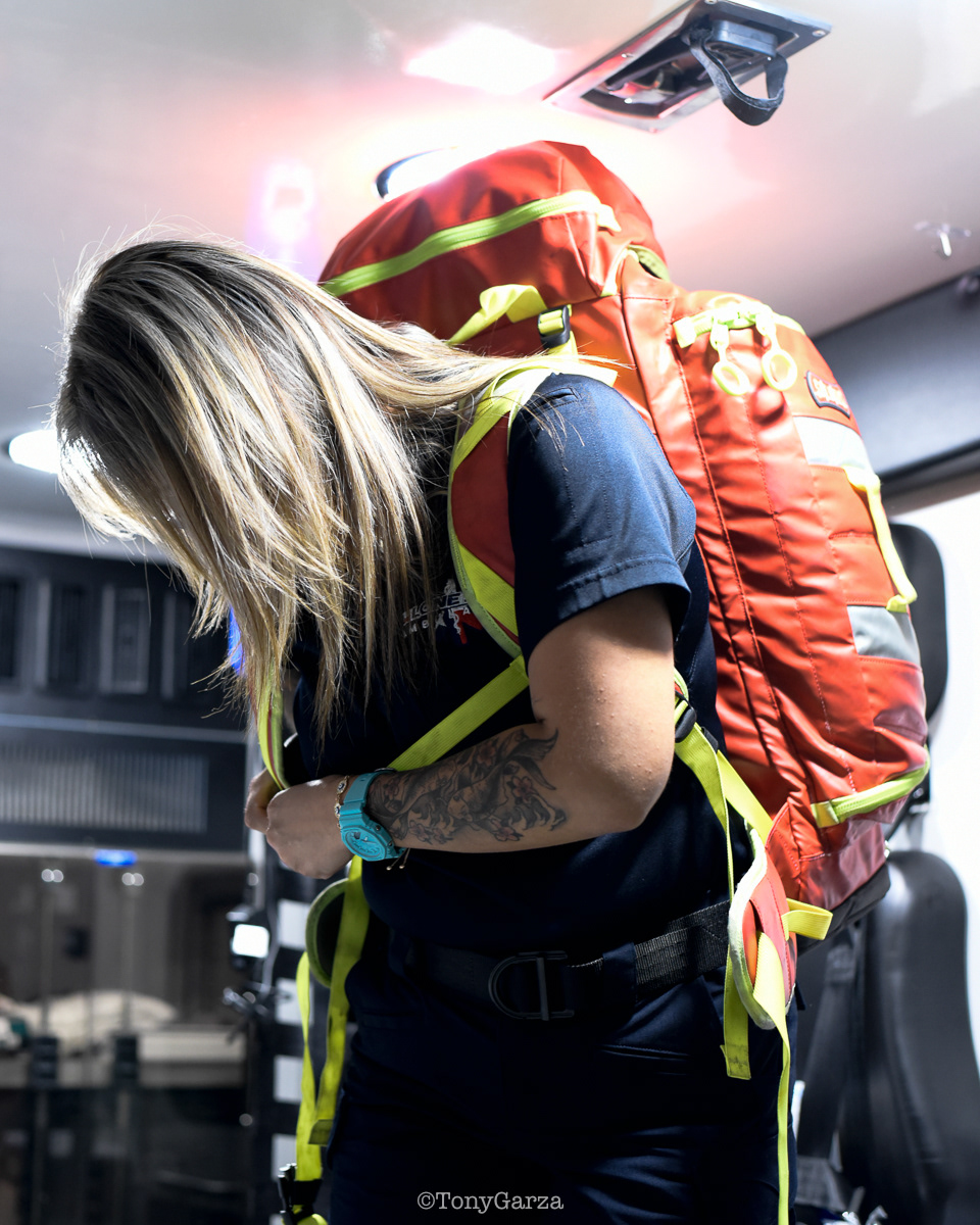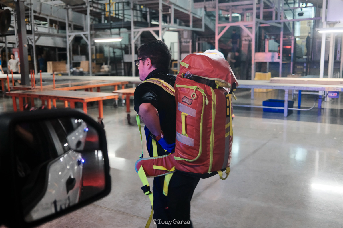(Pictured: Supervisor/Paramedic O. Espinoza, with over 20 years of service, walking in and out from emergencies.)