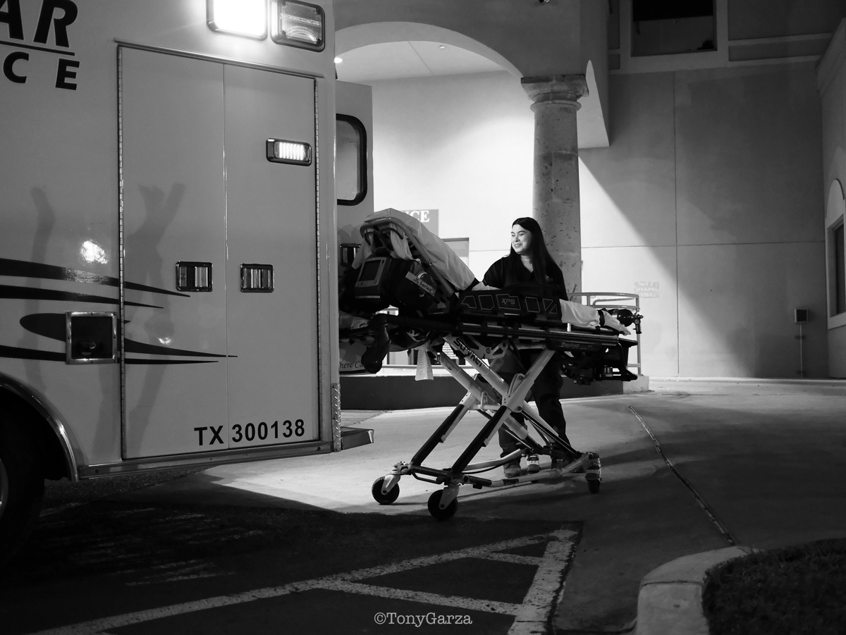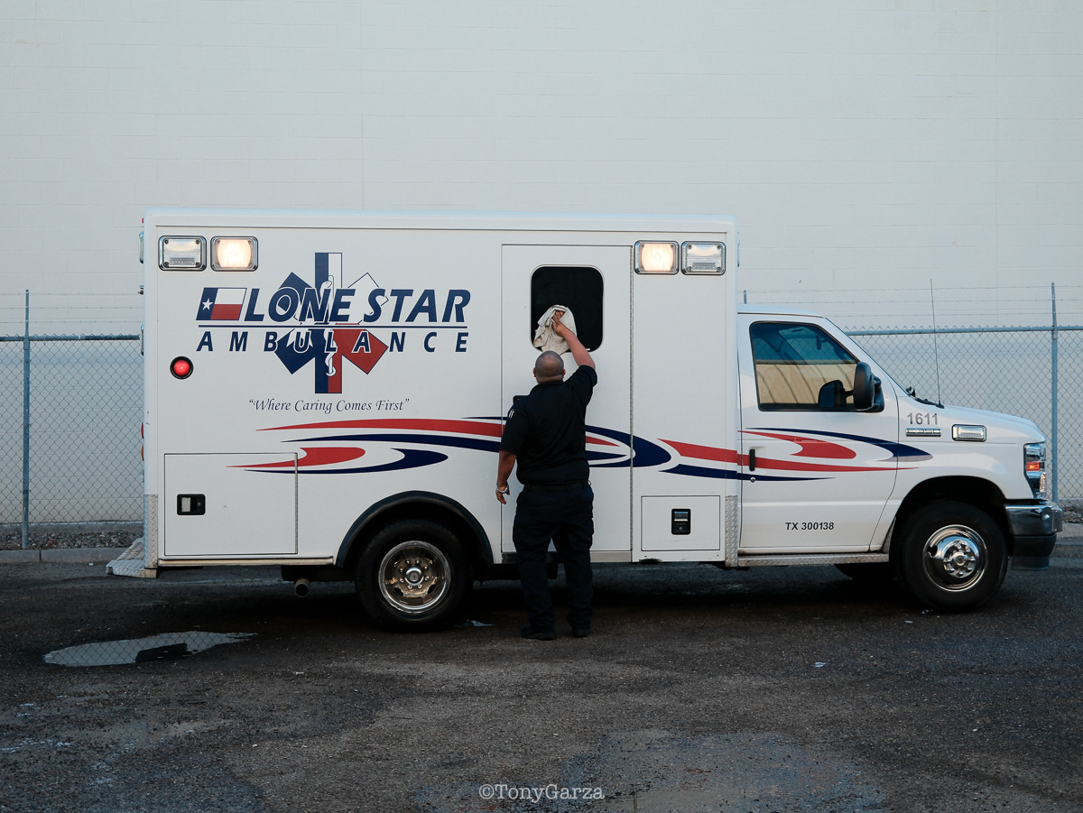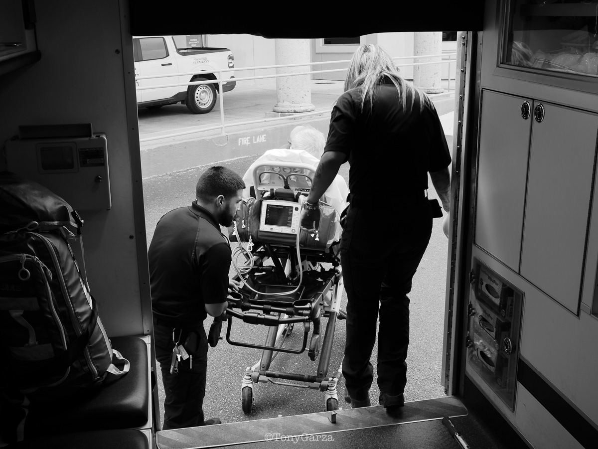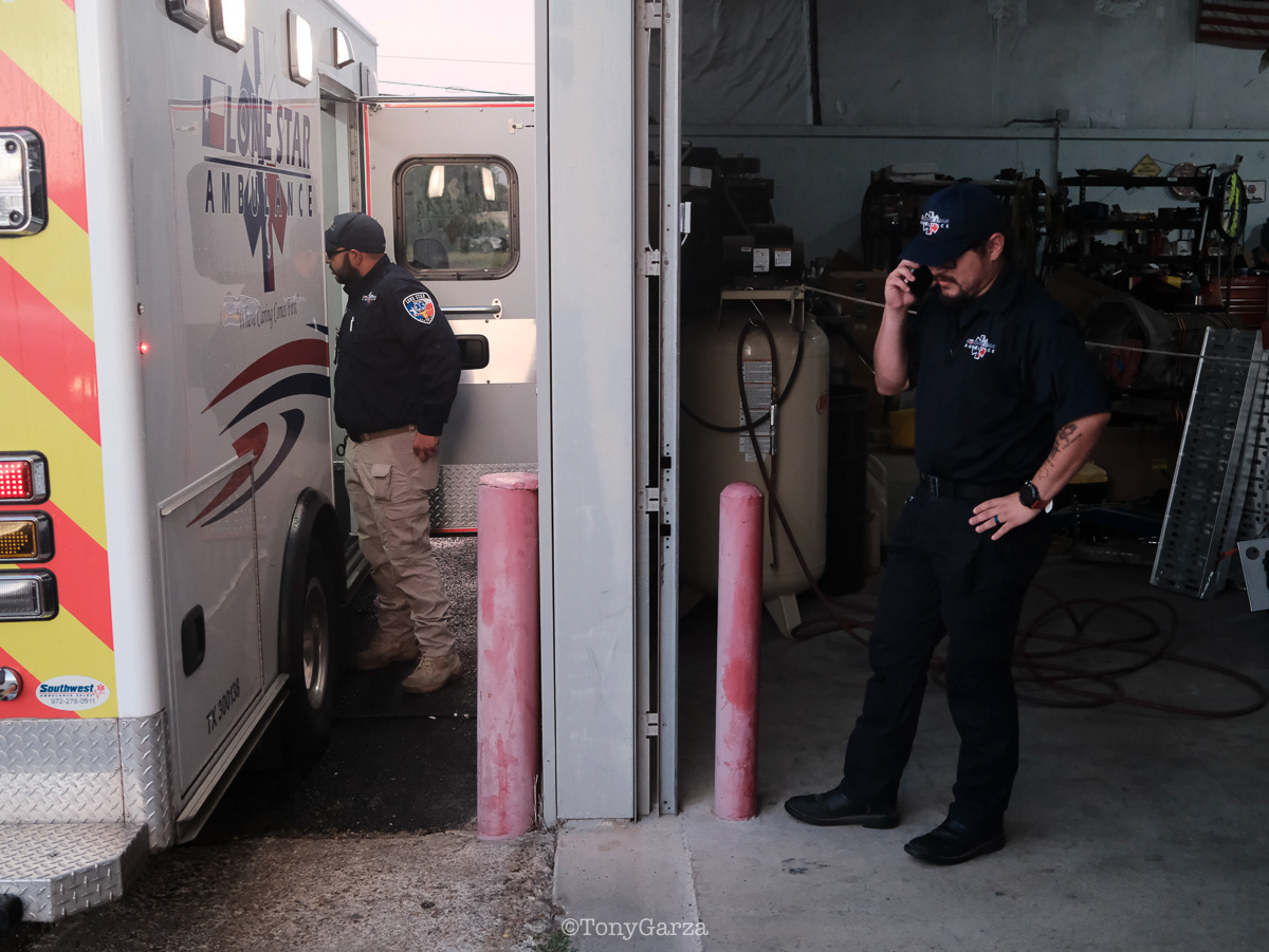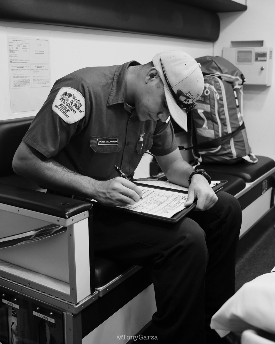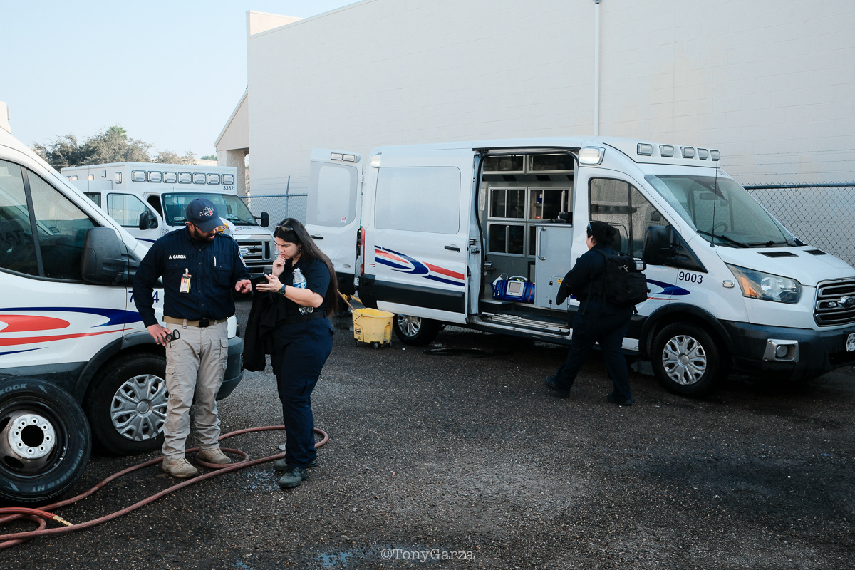 (Pictured: Supervisor/Paramedic O. Espinoza, with over 20 years of service, walking in and out from emergencies.)