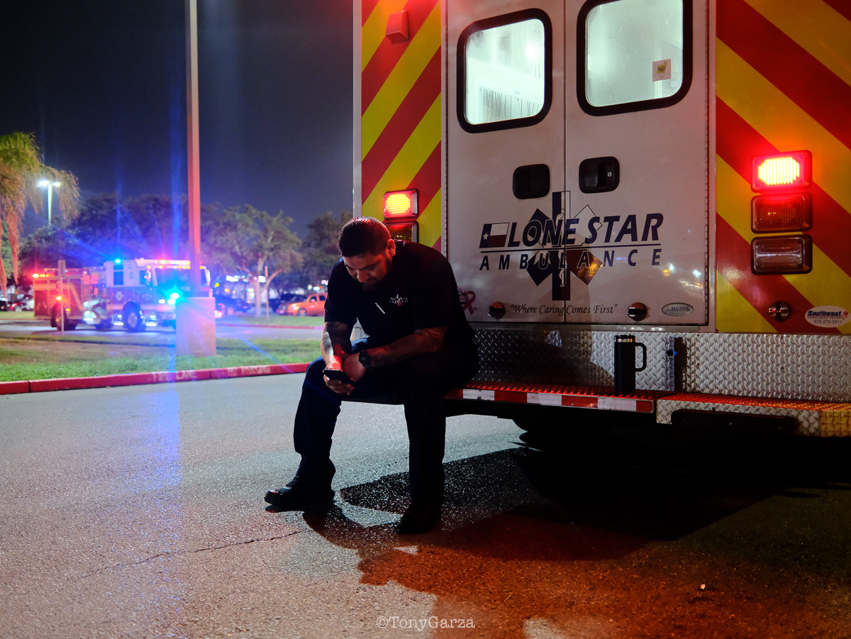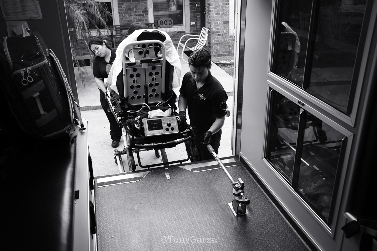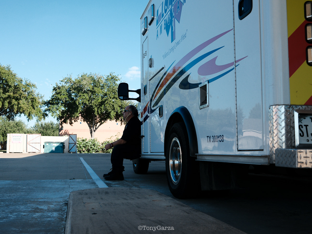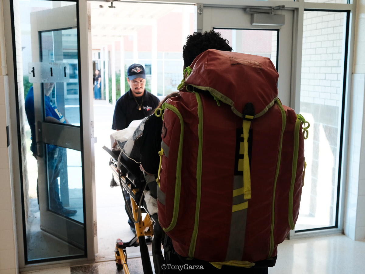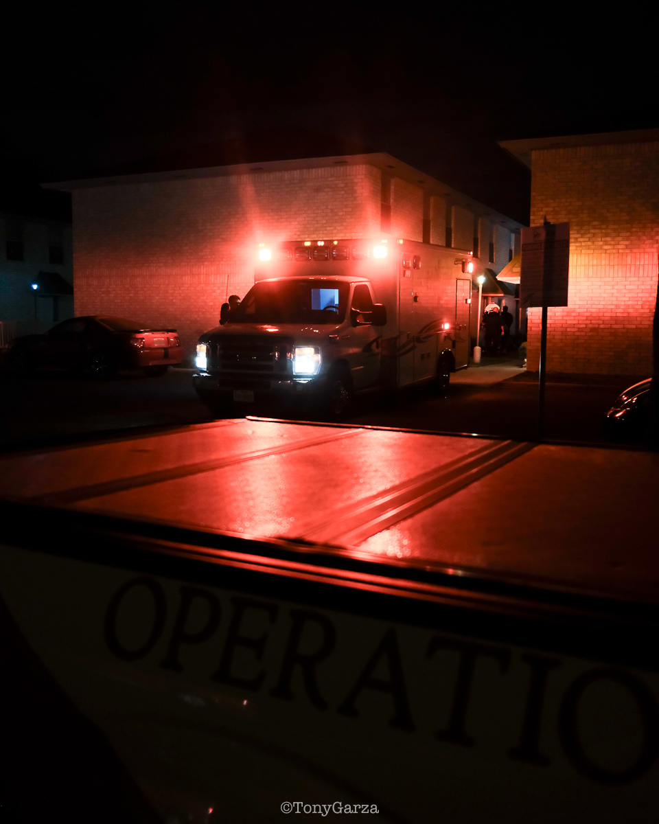 (Pictured: Supervisor/Paramedic O. Espinoza, with over 20 years of service, walking in and out from emergencies.)