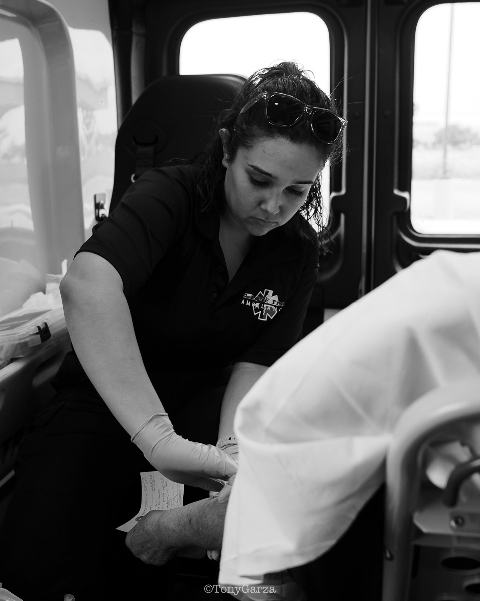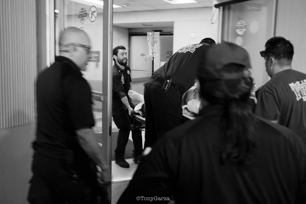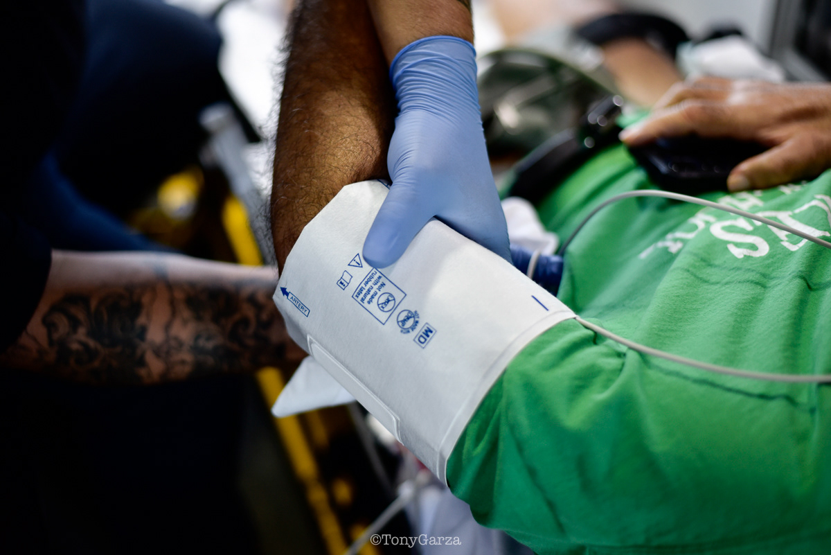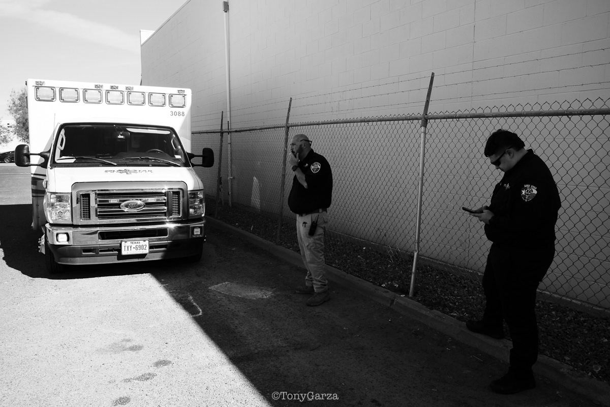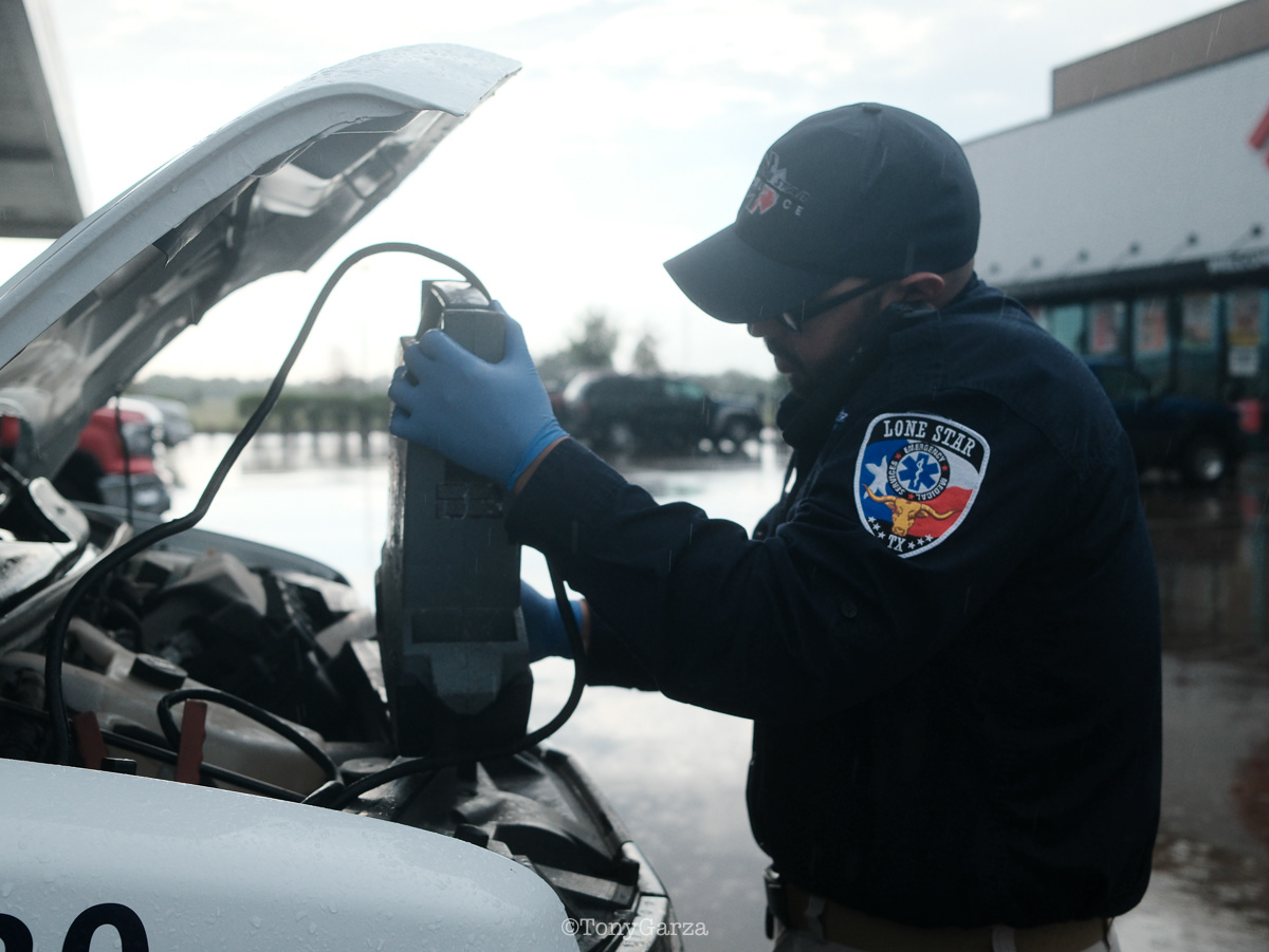 (Pictured: Supervisor/Paramedic O. Espinoza, with over 20 years of service, walking in and out from emergencies.)