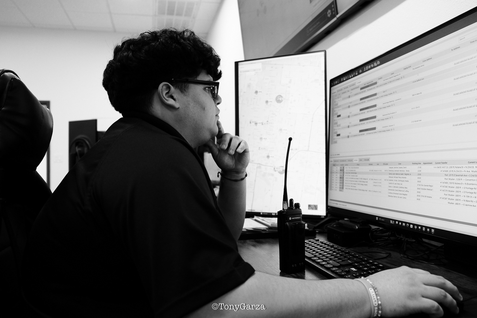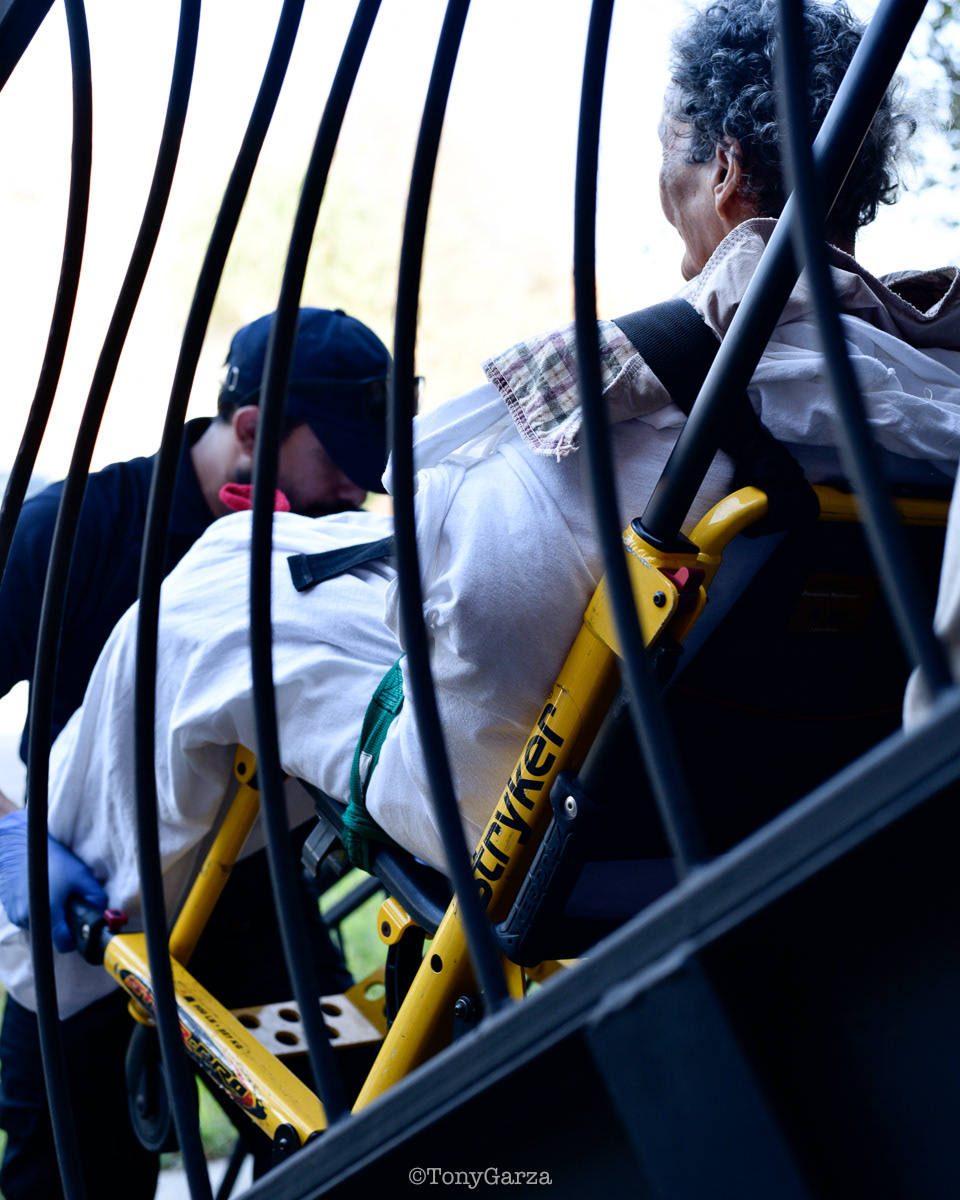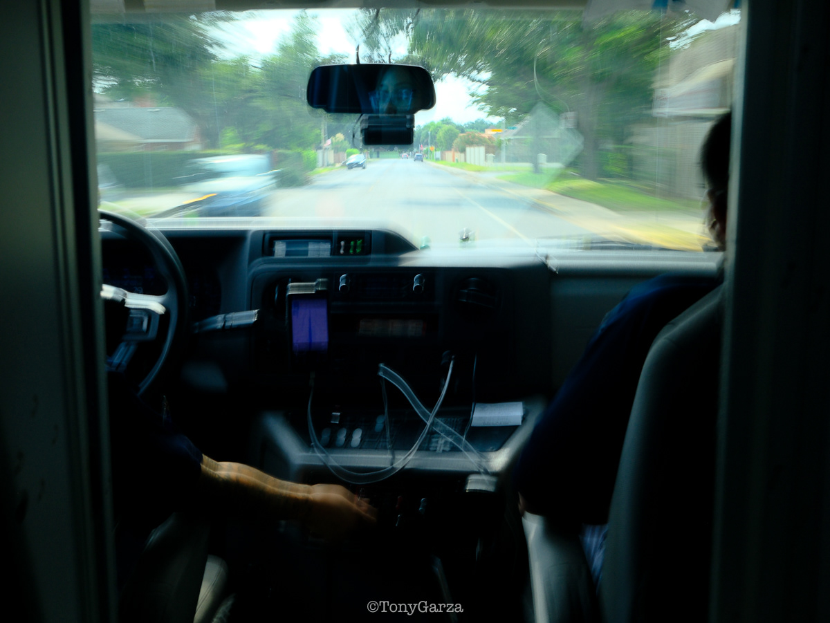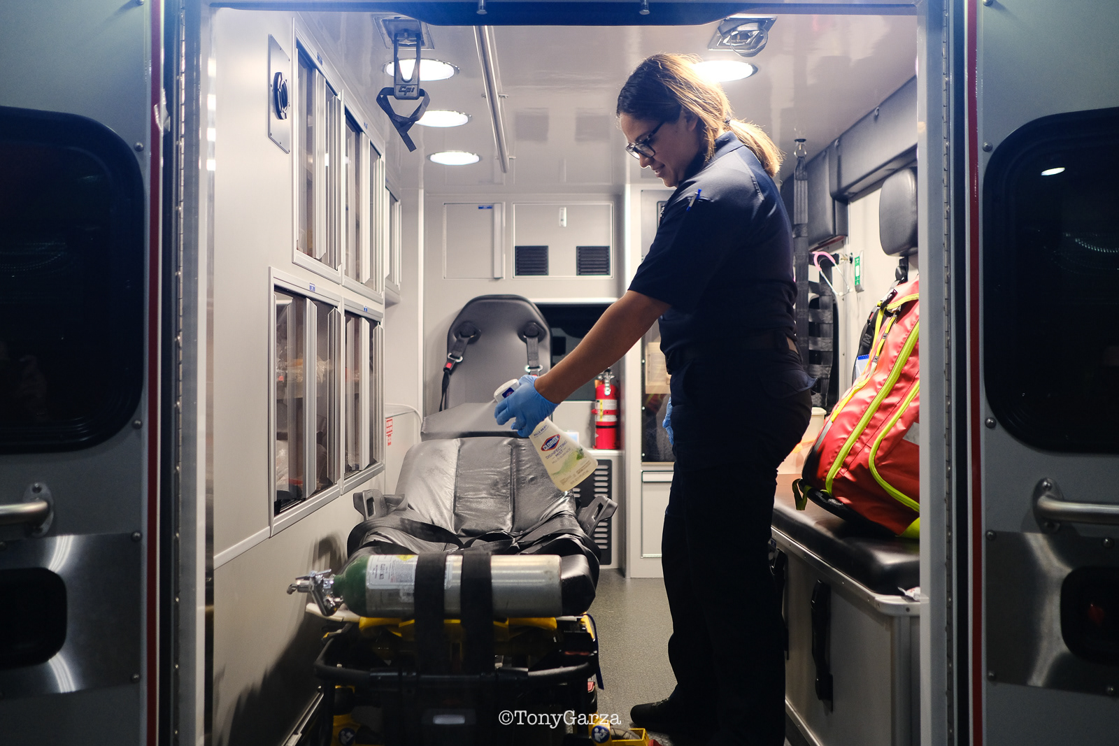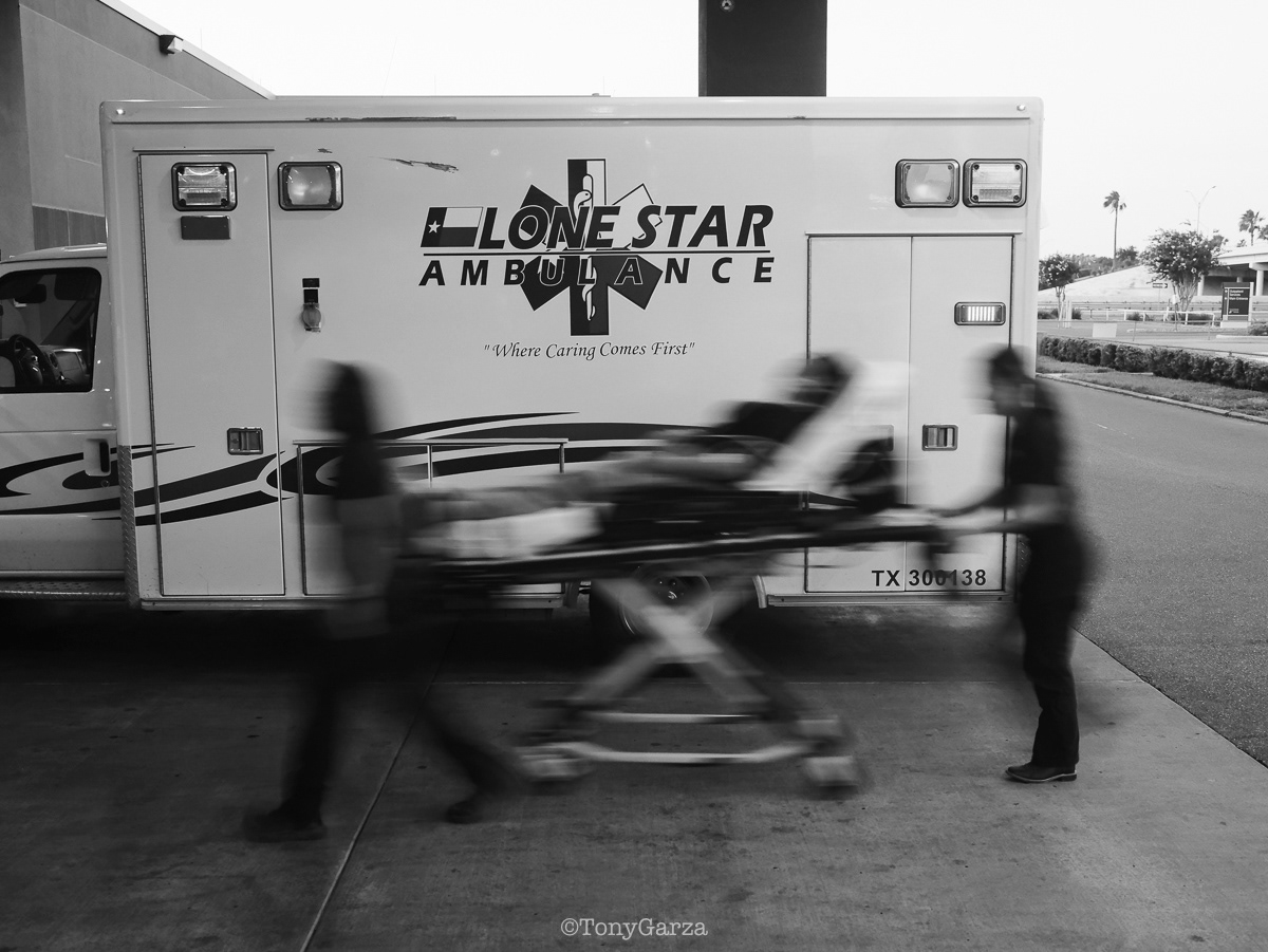 (Pictured: Supervisor/Paramedic O. Espinoza, with over 20 years of service, walking in and out from emergencies.)