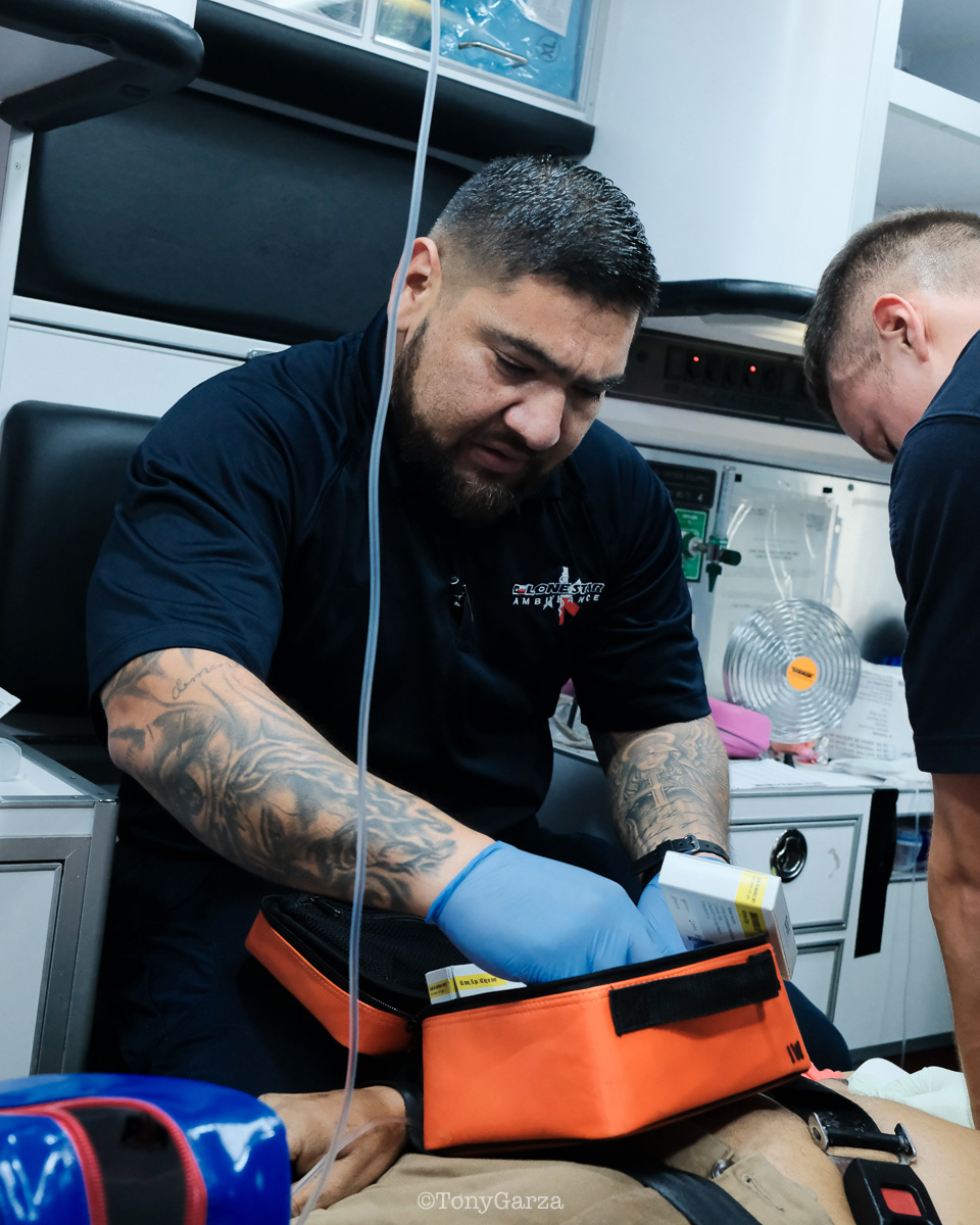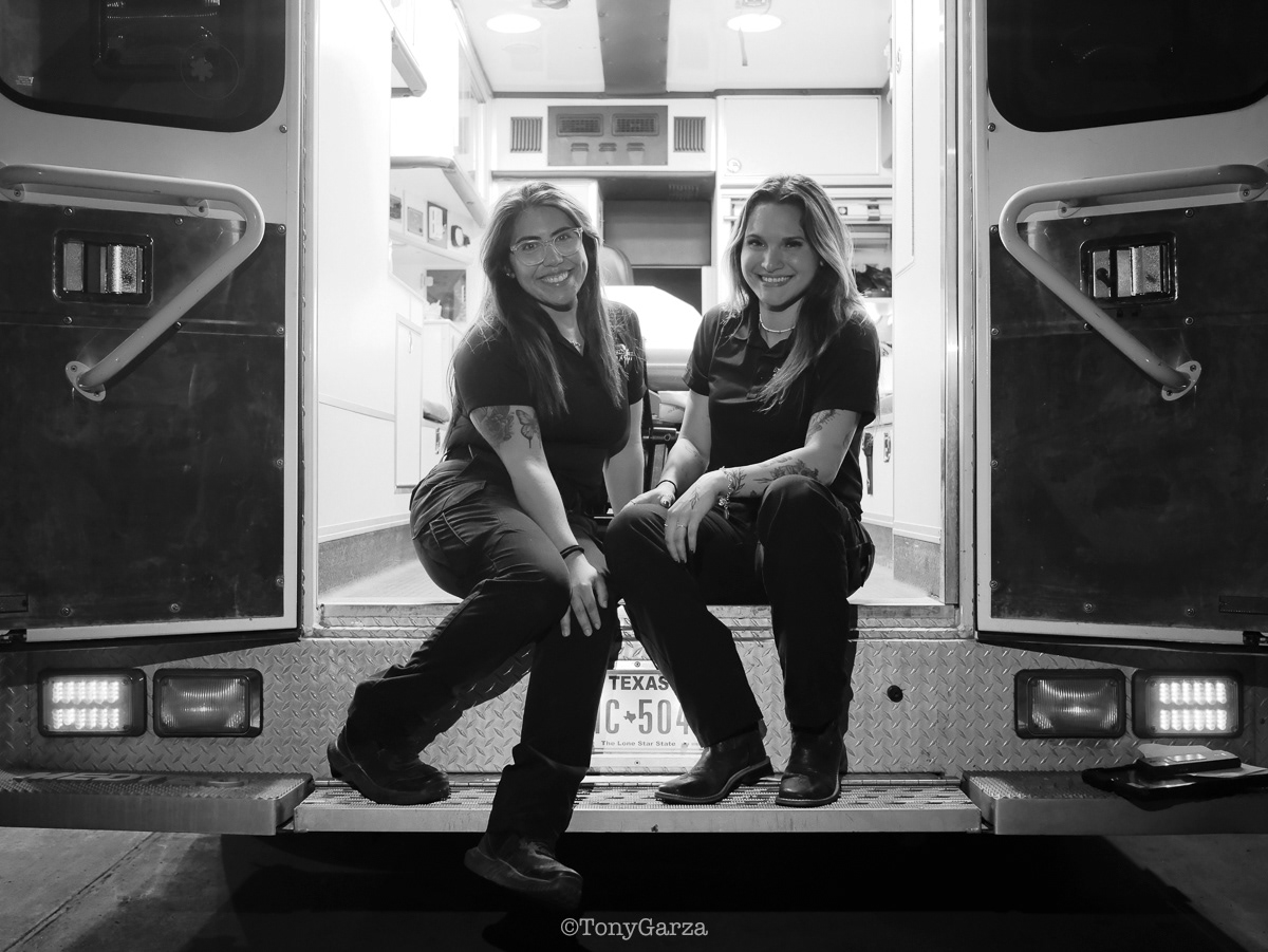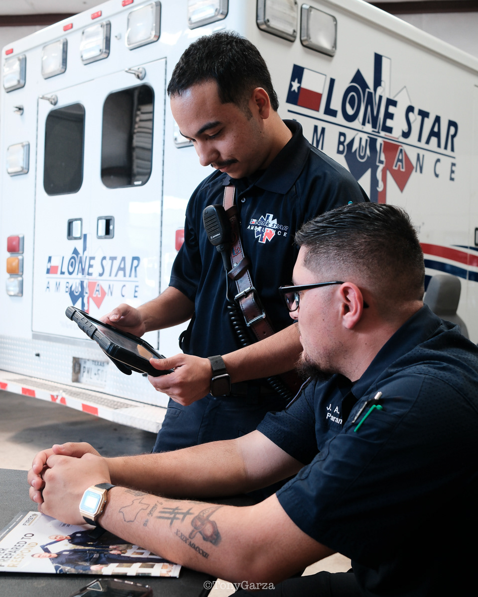 Medic 7: Paramedic D. Garza and EMT Y. Lopez, over a decade of combined experience.