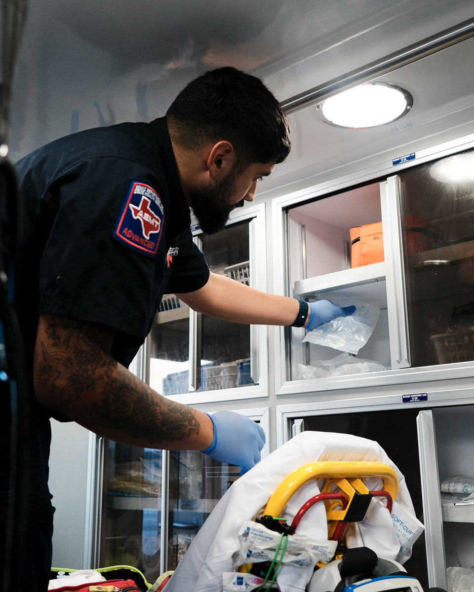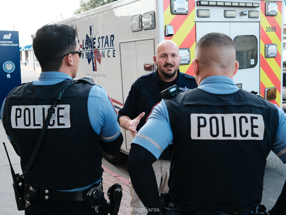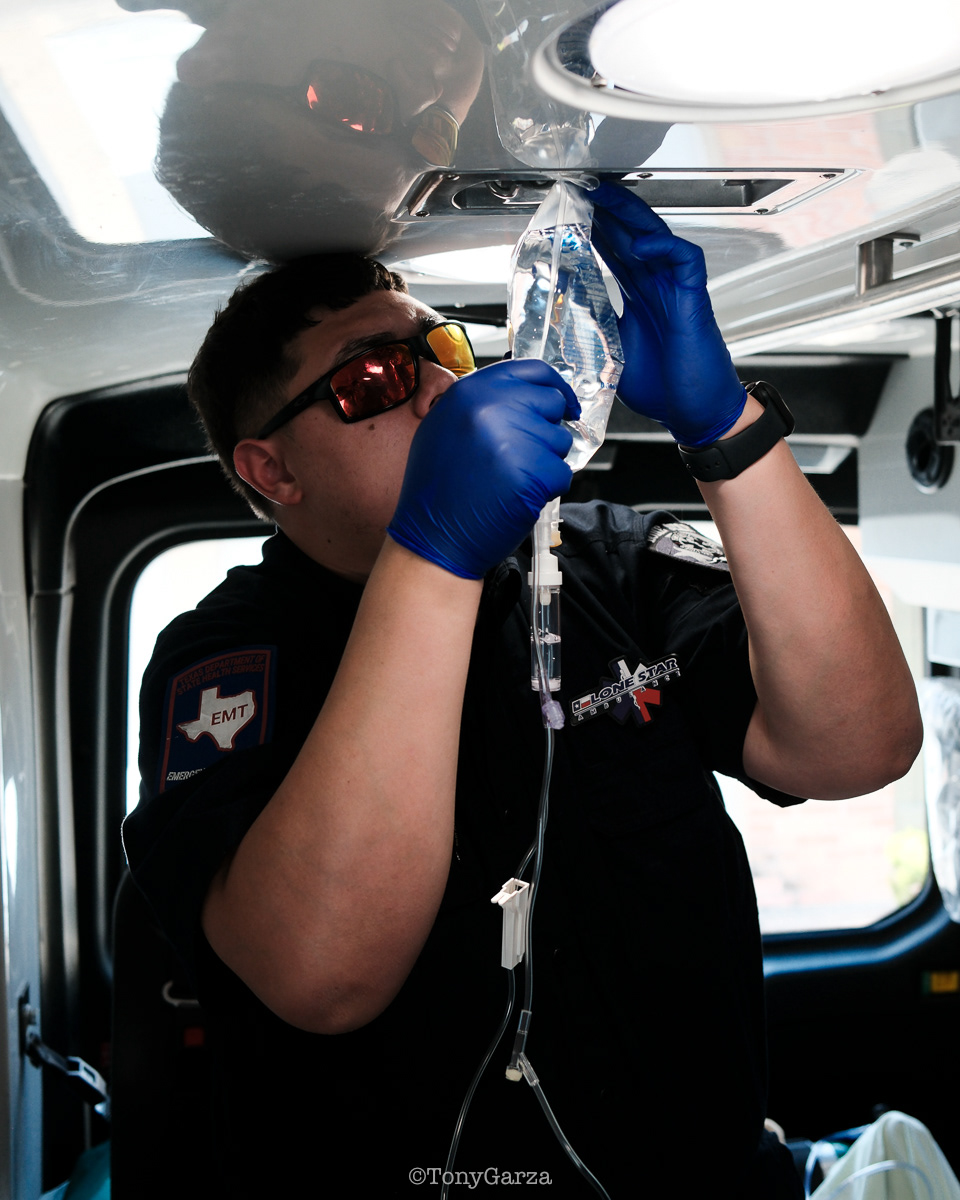 Medic 7: Paramedic D. Garza and EMT Y. Lopez, over a decade of combined experience.