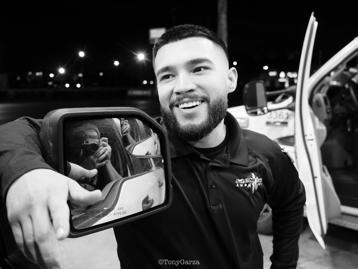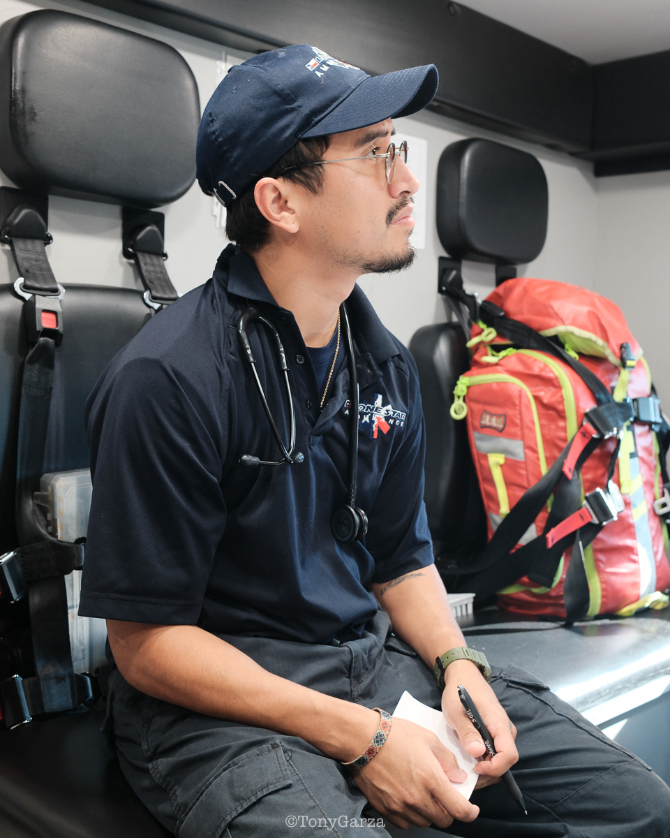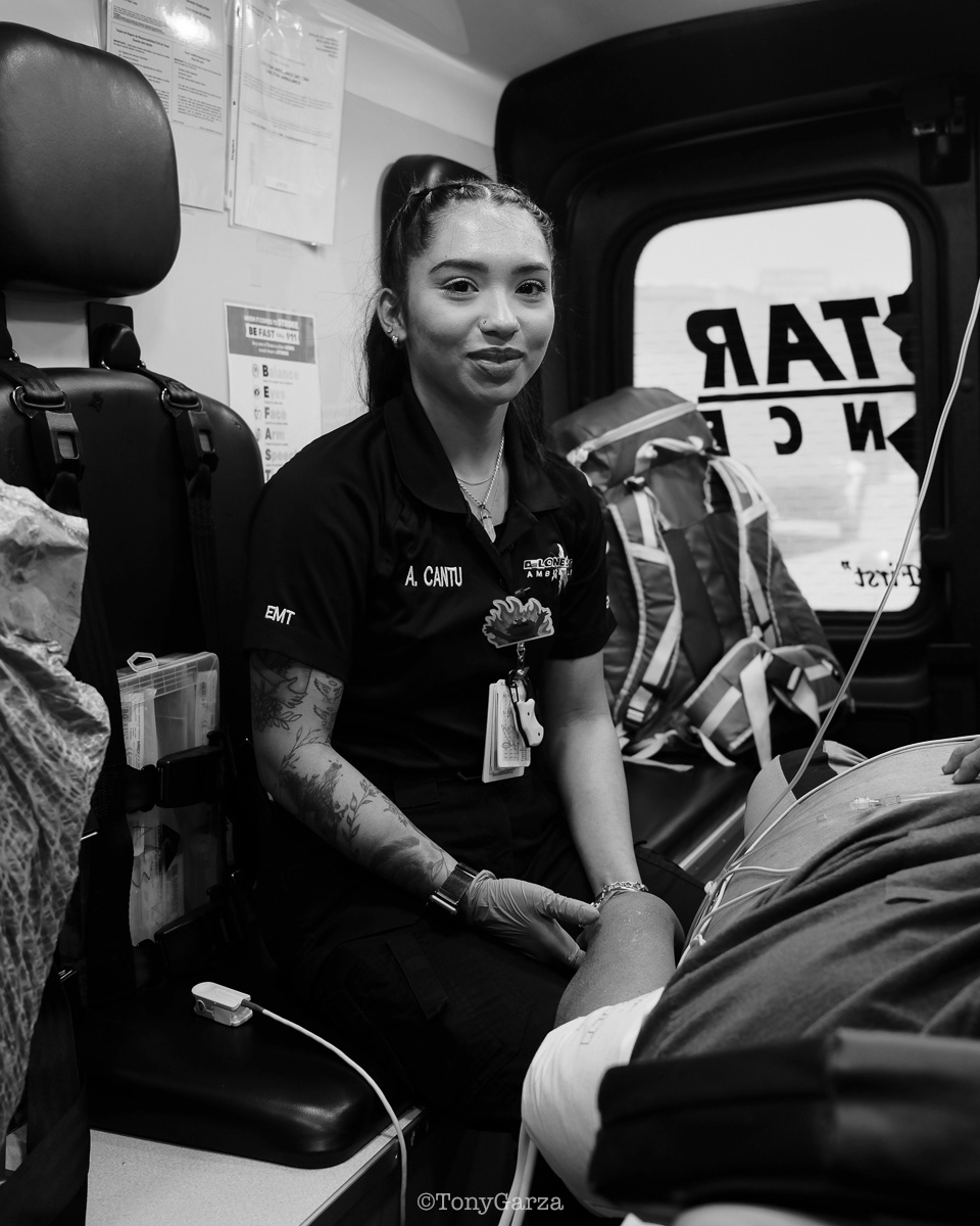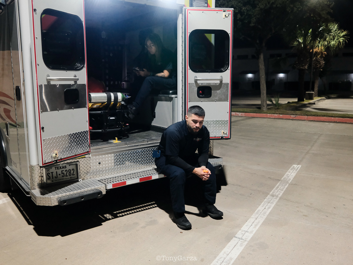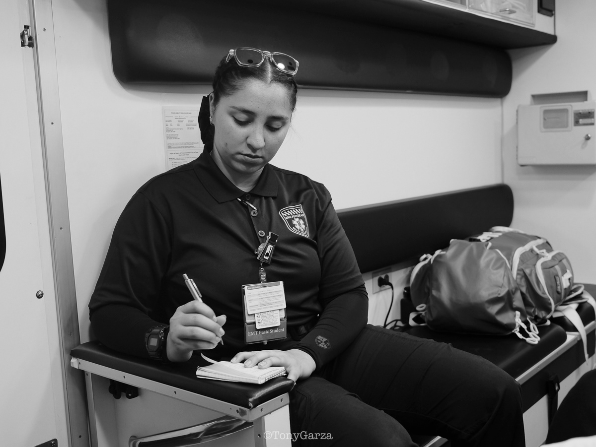 Alpha 3: Paramedic R. Maciel (11 years) and EMT L. Ramirez (5 years), on a 12-hour shift, both joined EMS to get 911 experience and save lives.