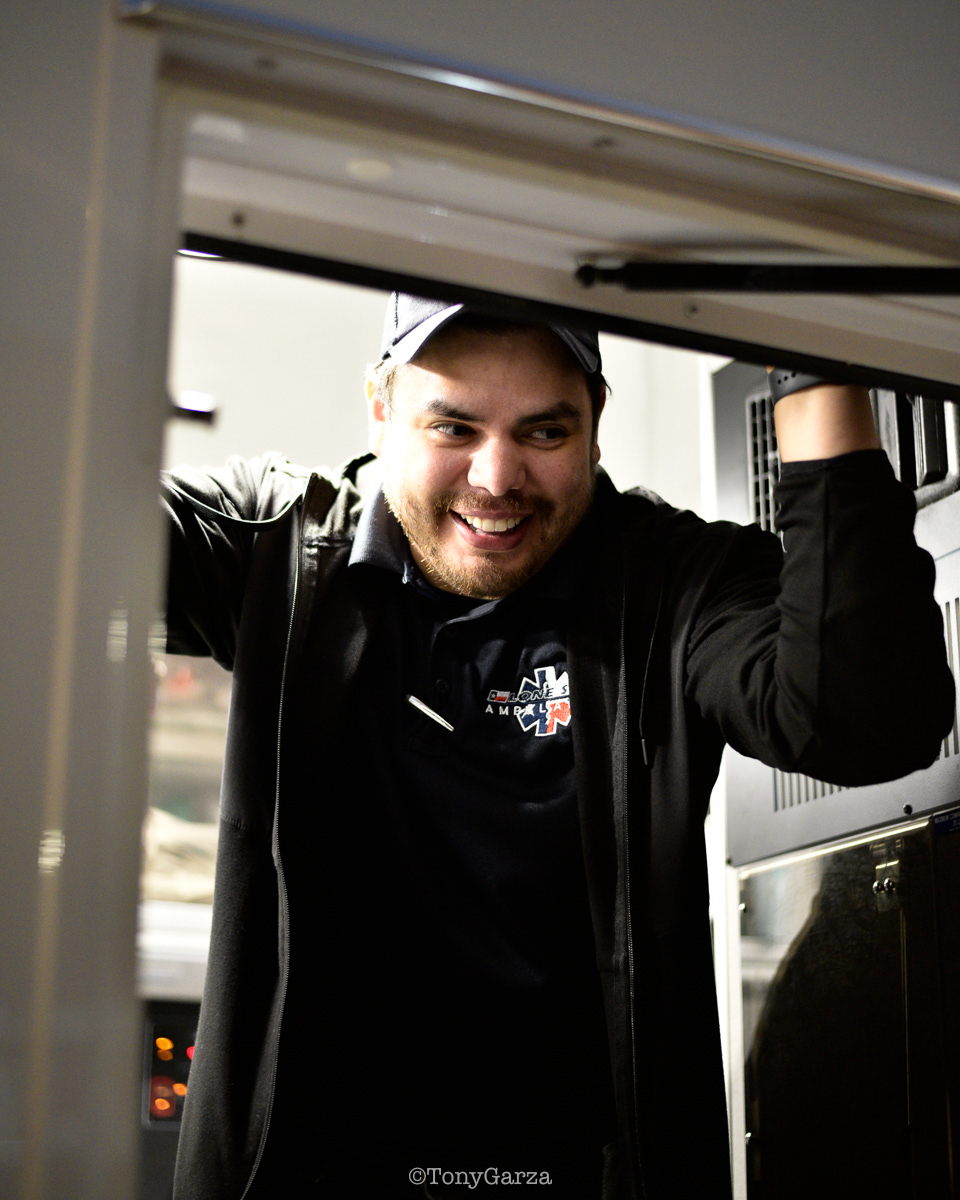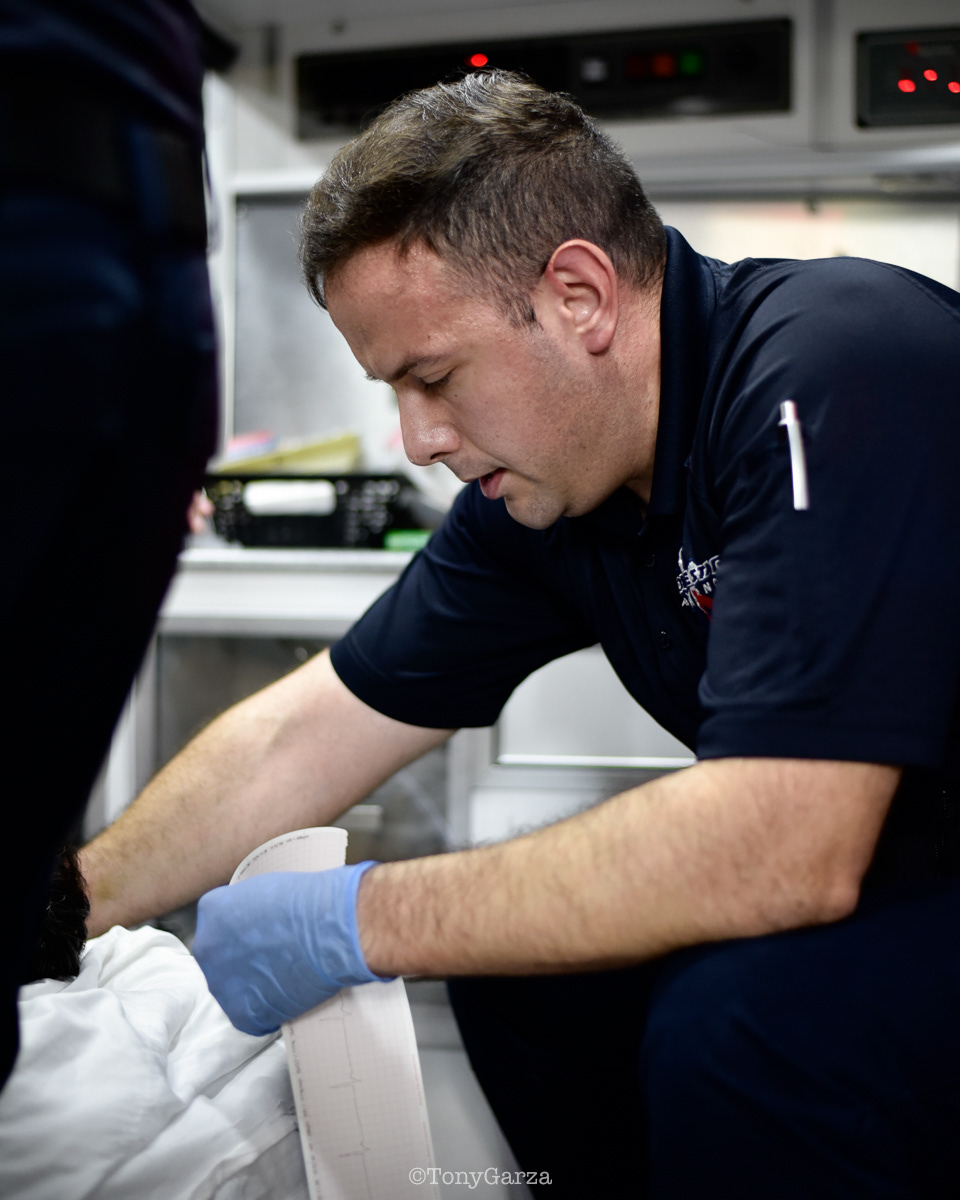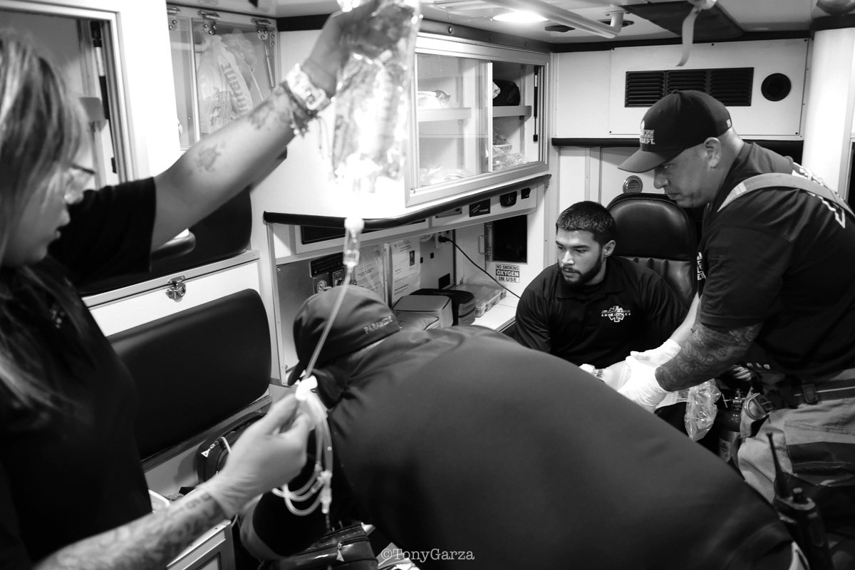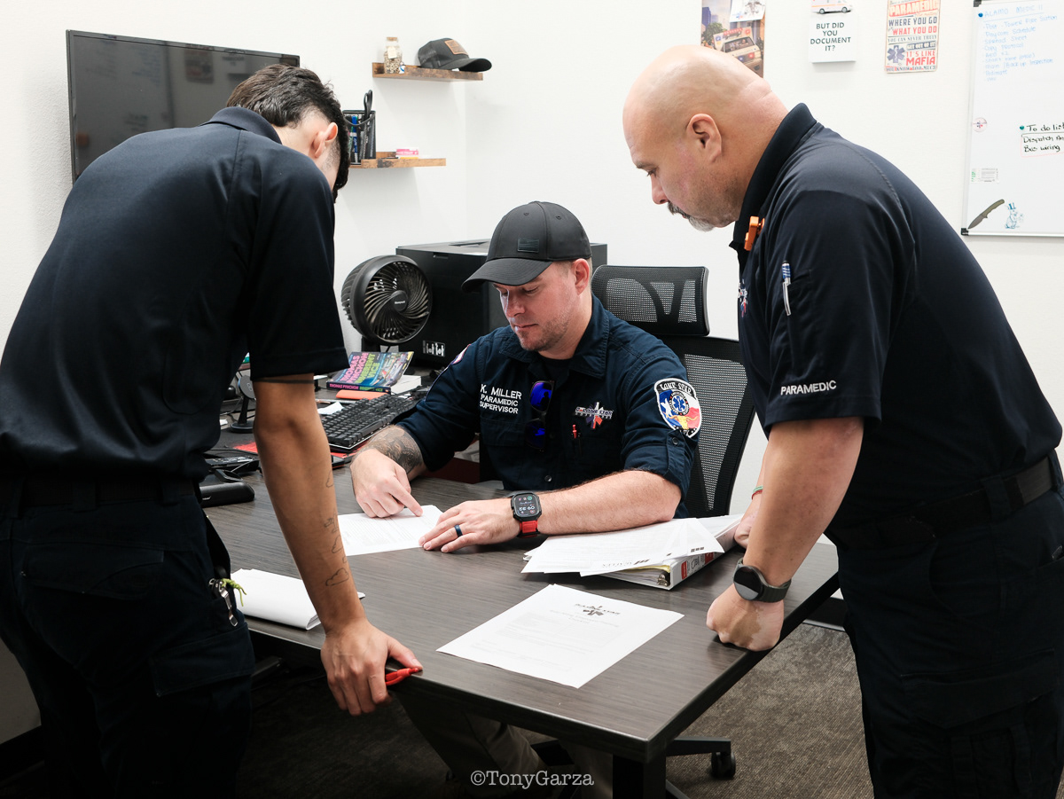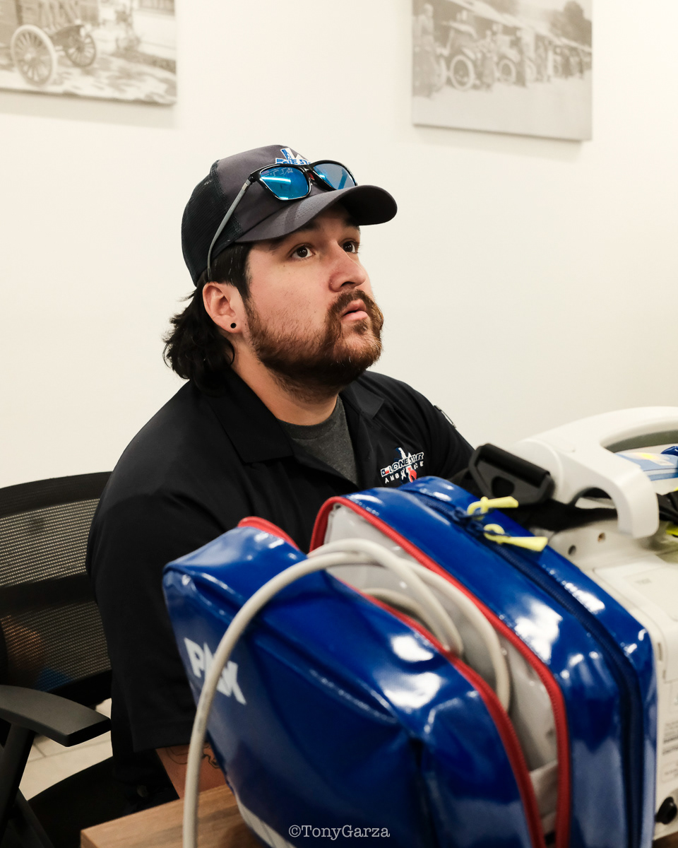 Alpha 3: AEMT J. Hernandez and EMT M. Marquez, on a 12 hour shift, with a combined experience of 22 years.