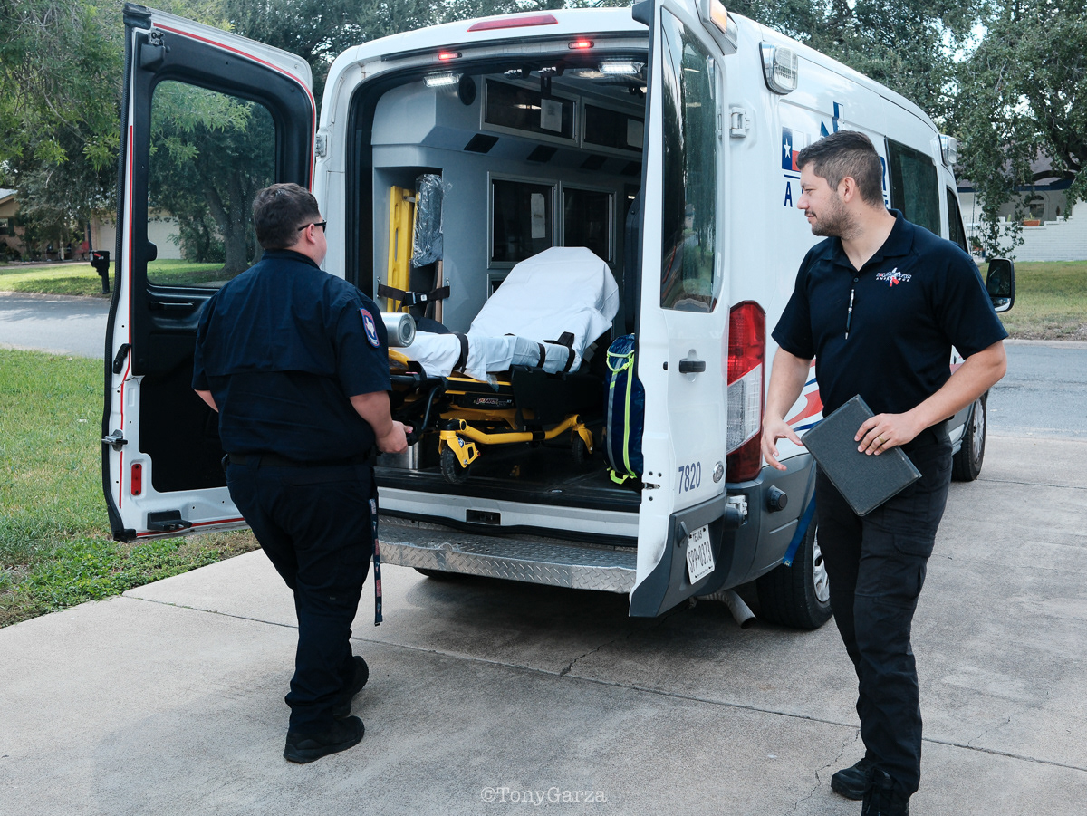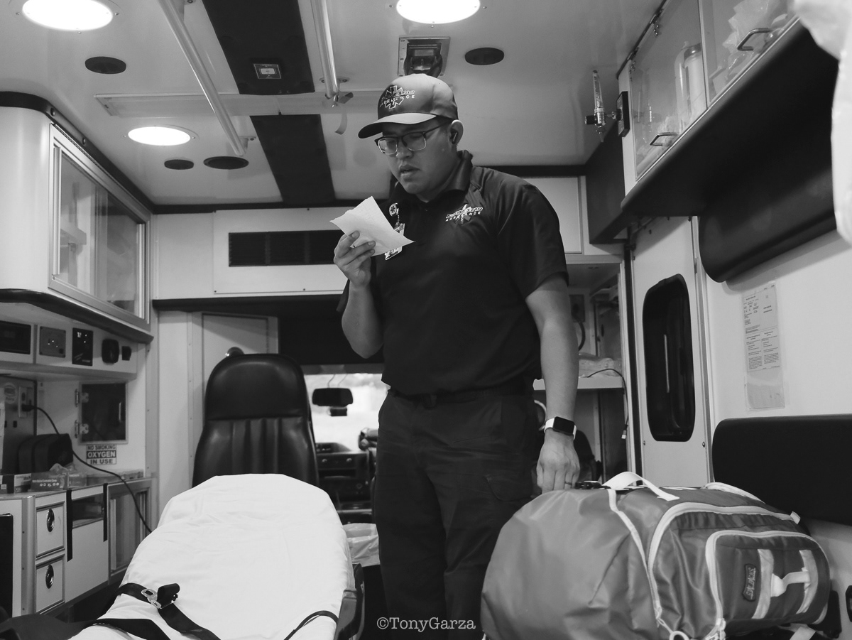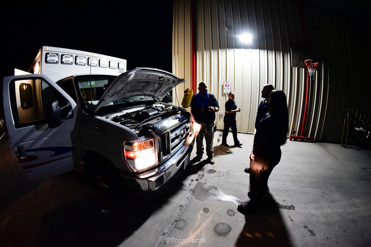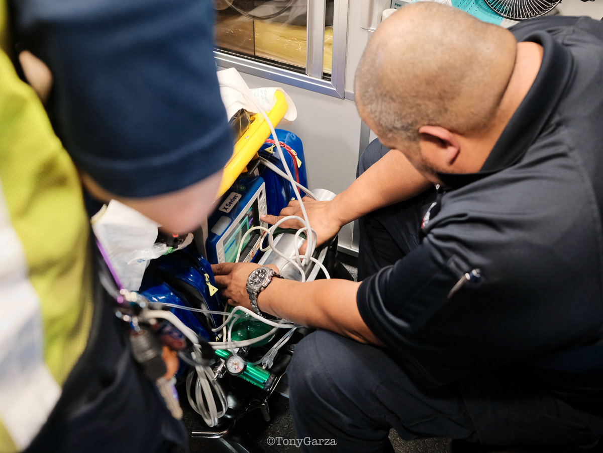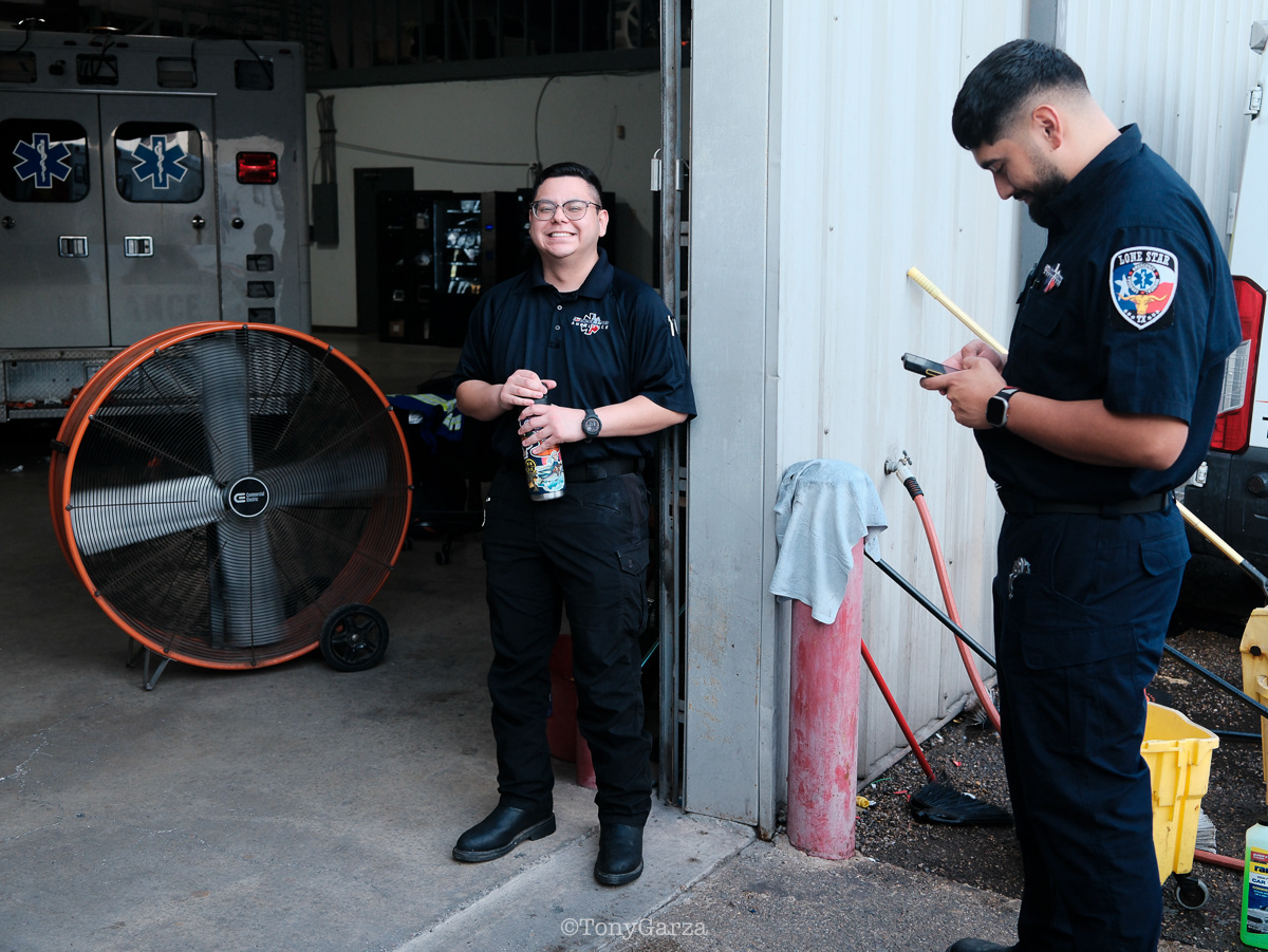 Alpha 3: AEMT J. Hernandez and EMT M. Marquez, on a 12 hour shift, with a combined experience of 22 years.