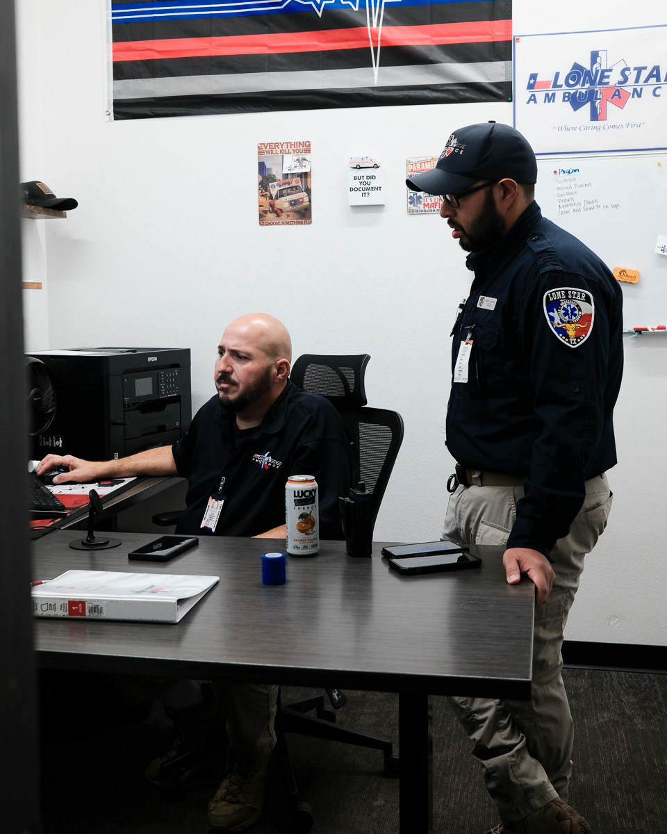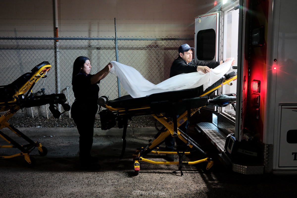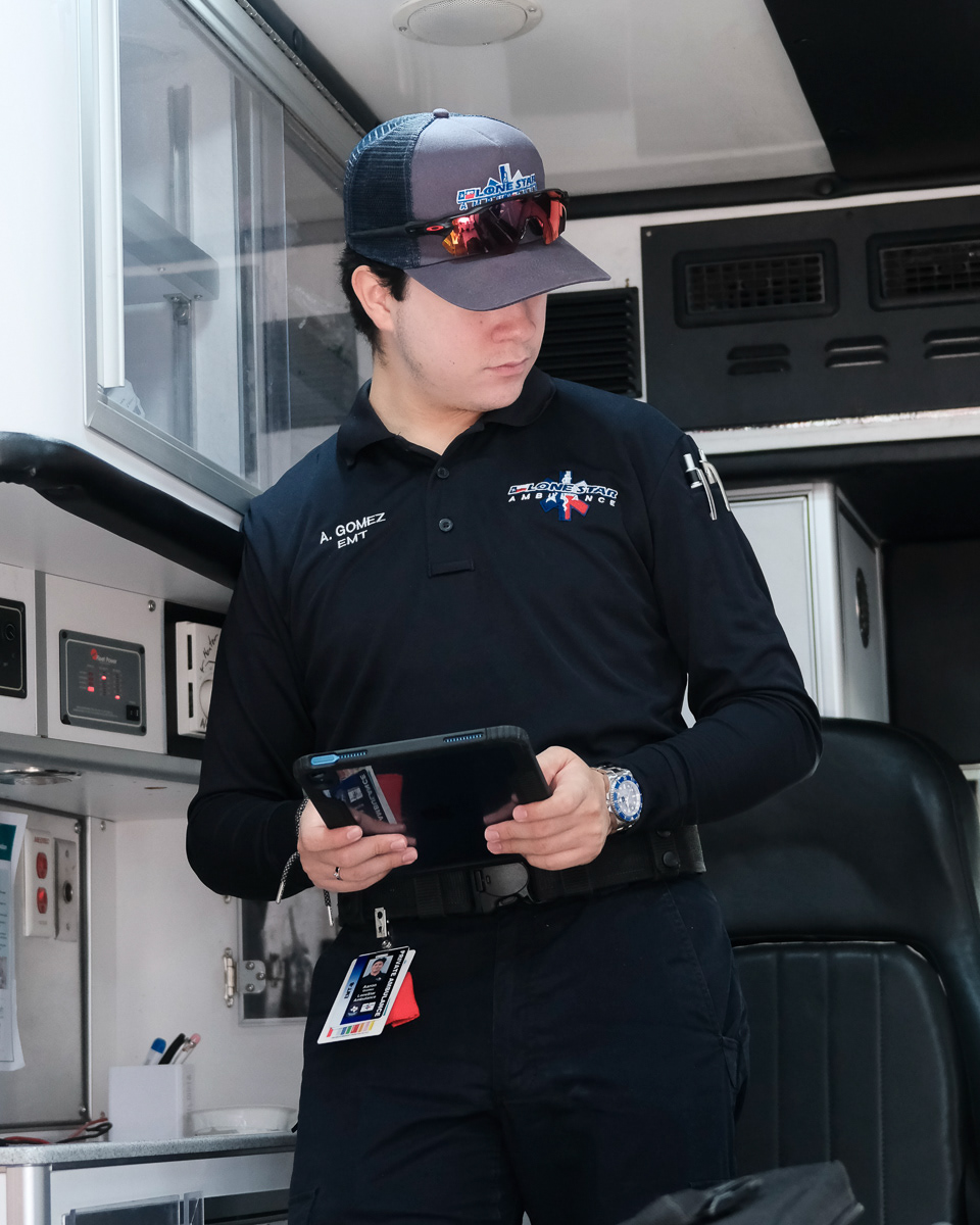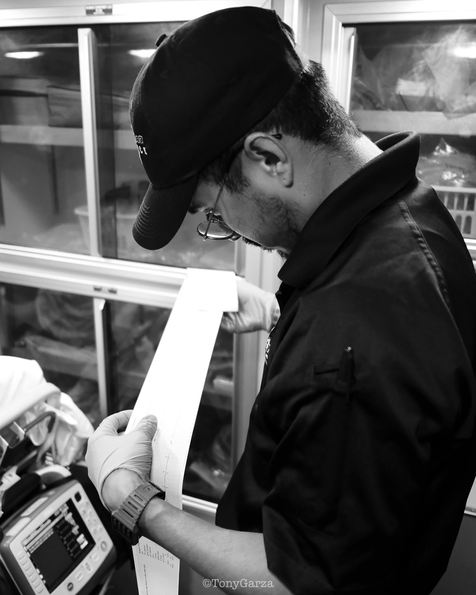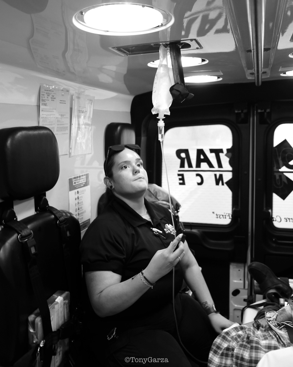 Alpha 3: AEMT J. Hernandez and EMT M. Marquez, on a 12 hour shift, with a combined experience of 22 years.