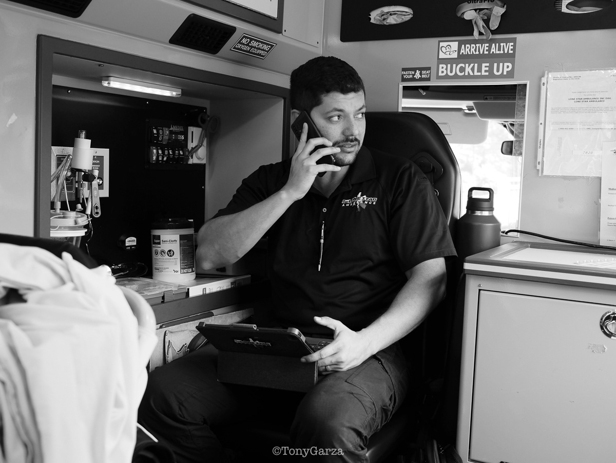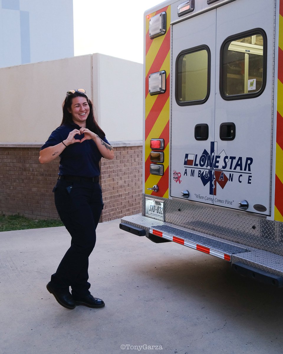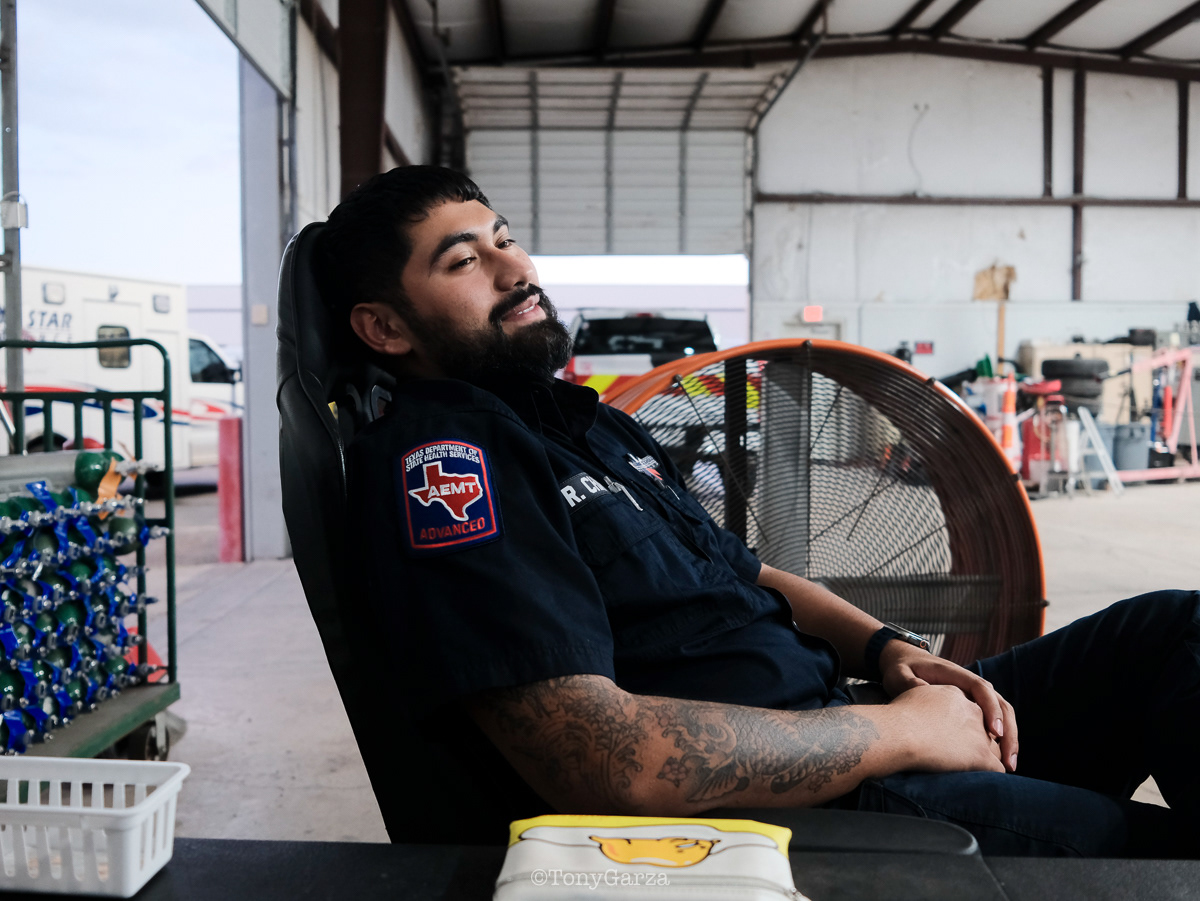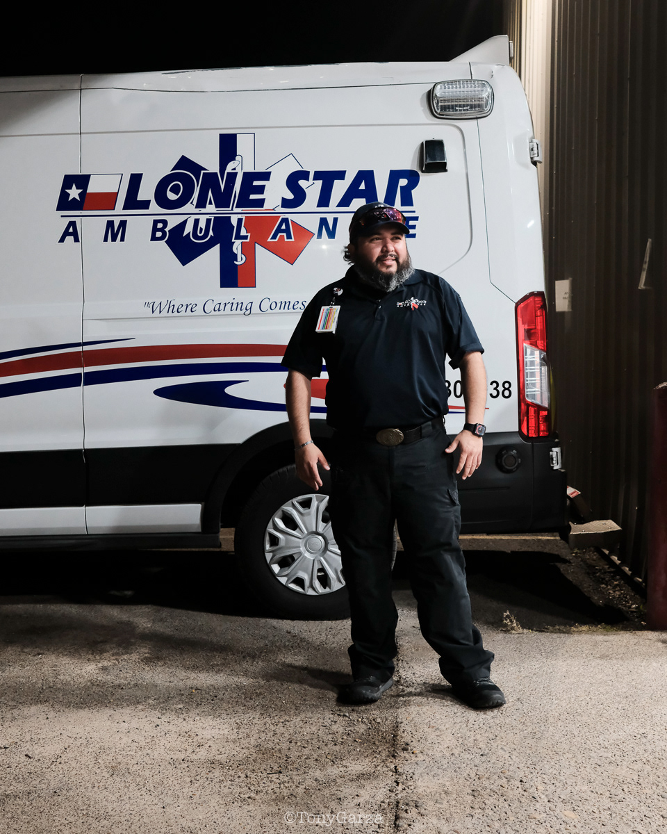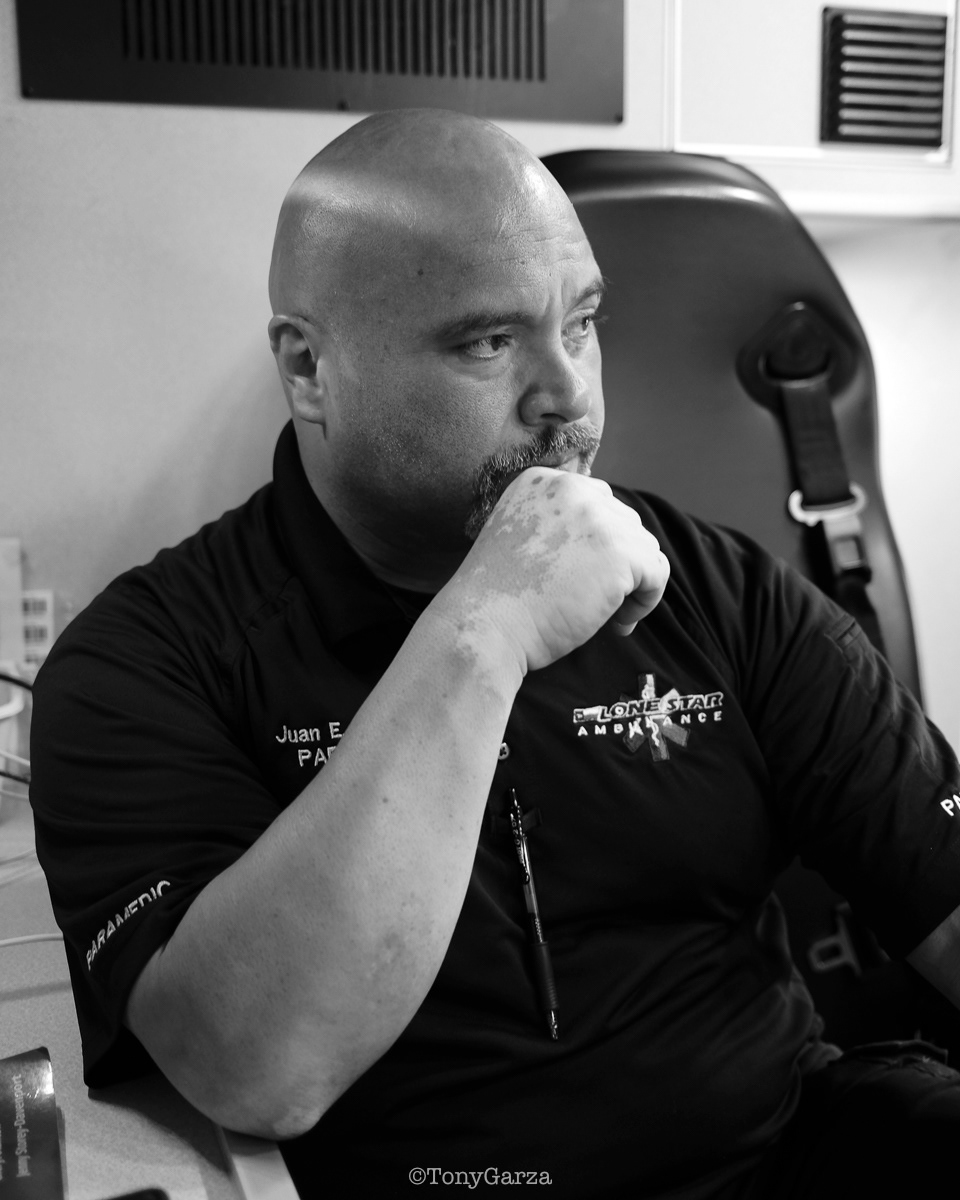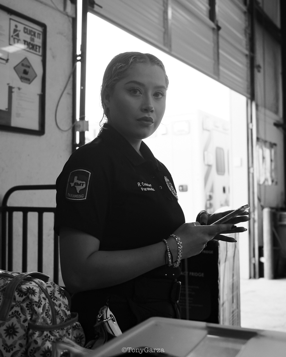R. De La Garza, Paramedic, with 4 years of EMS service.