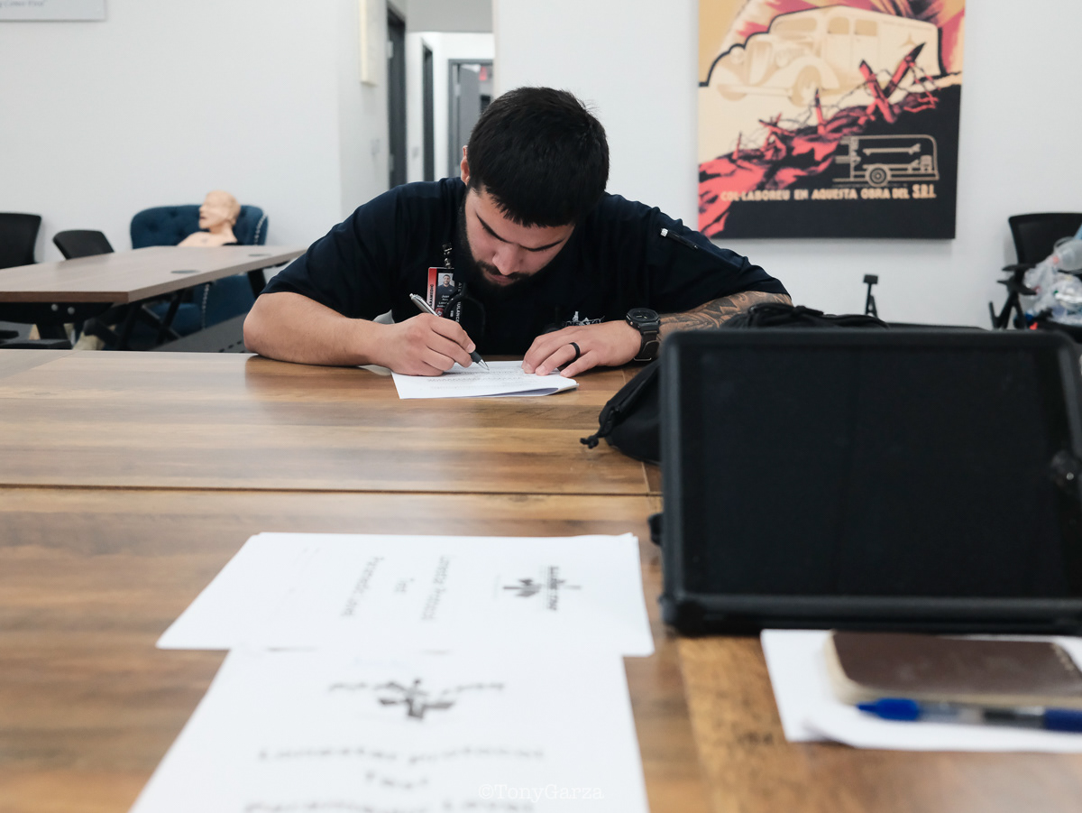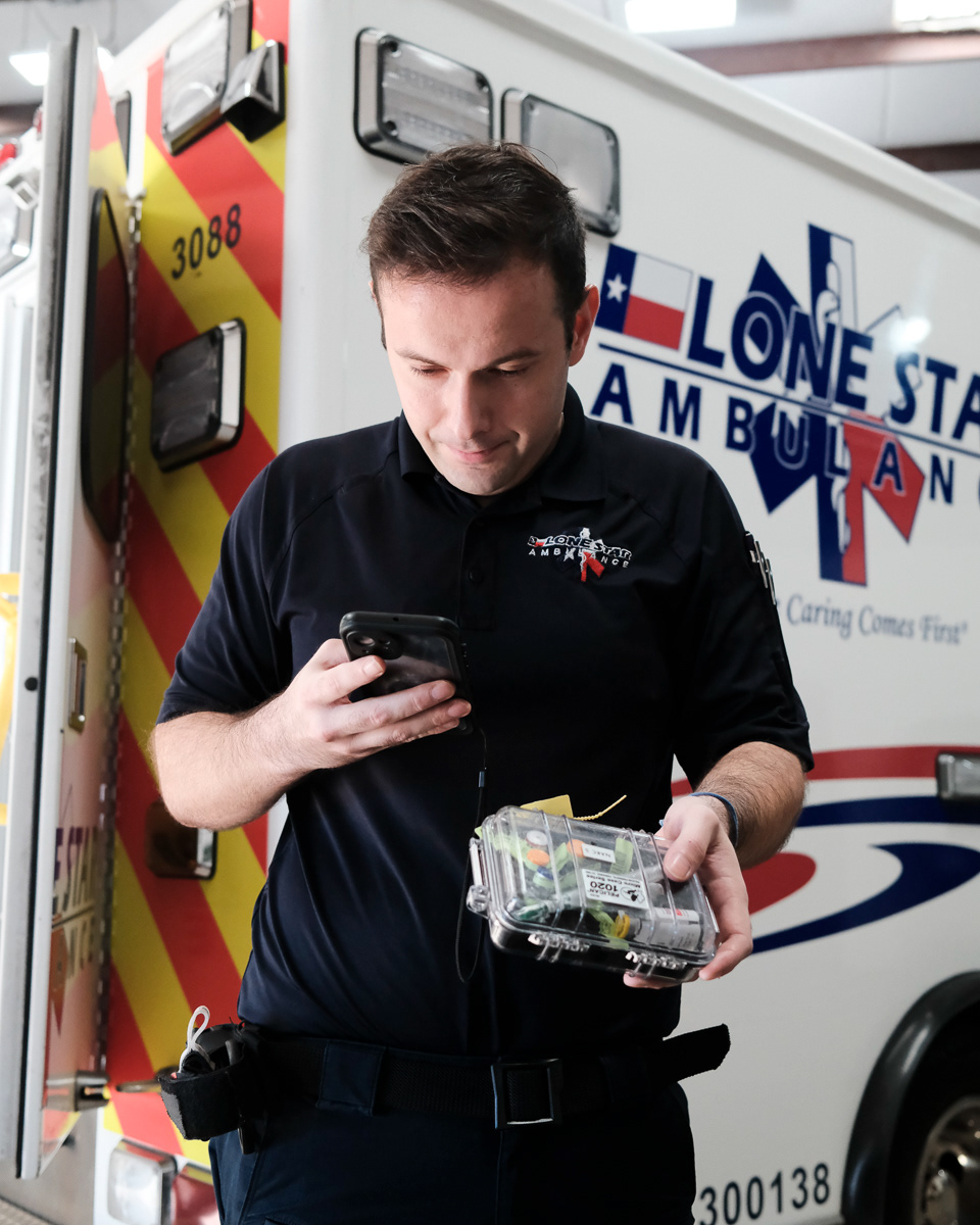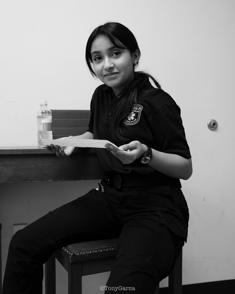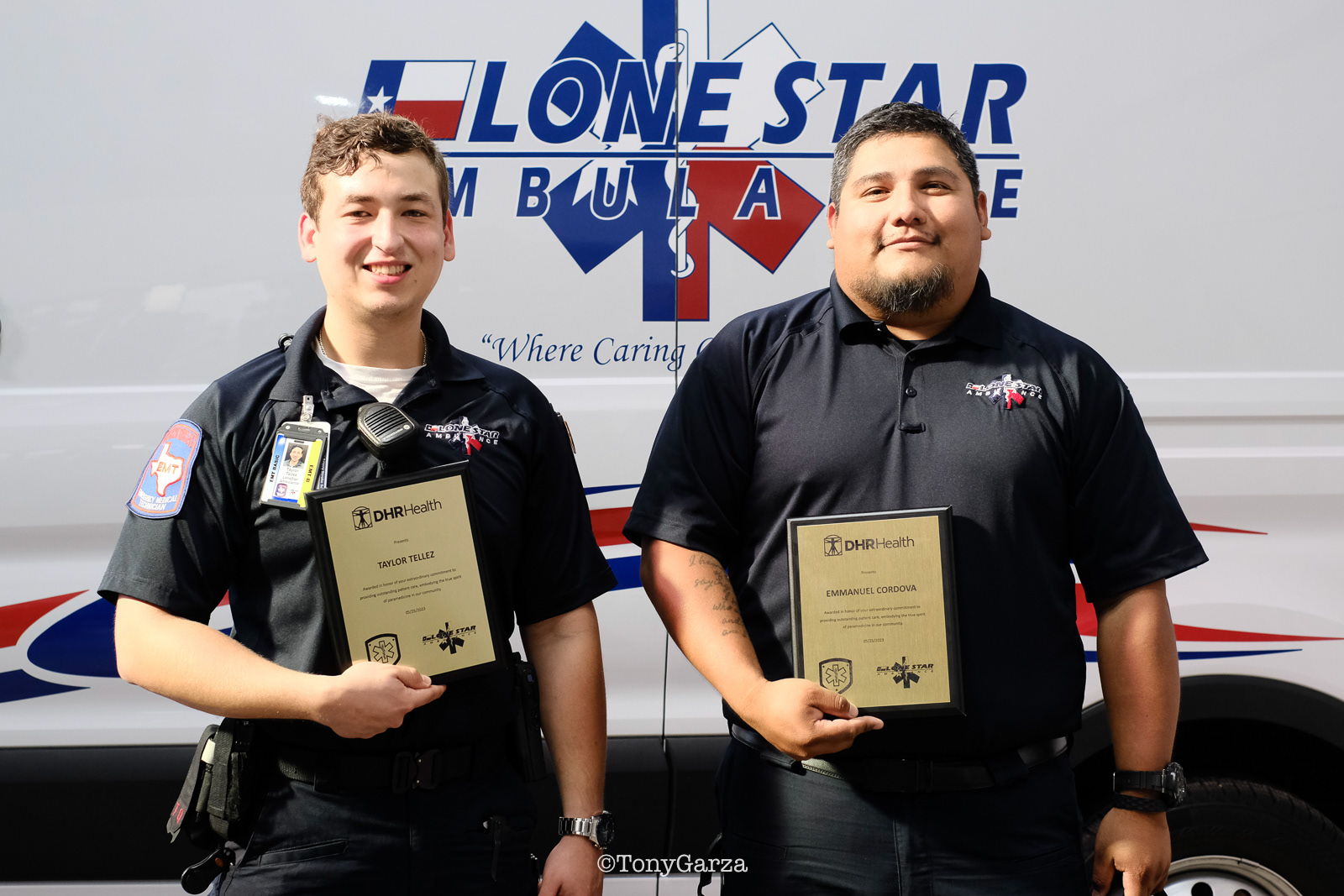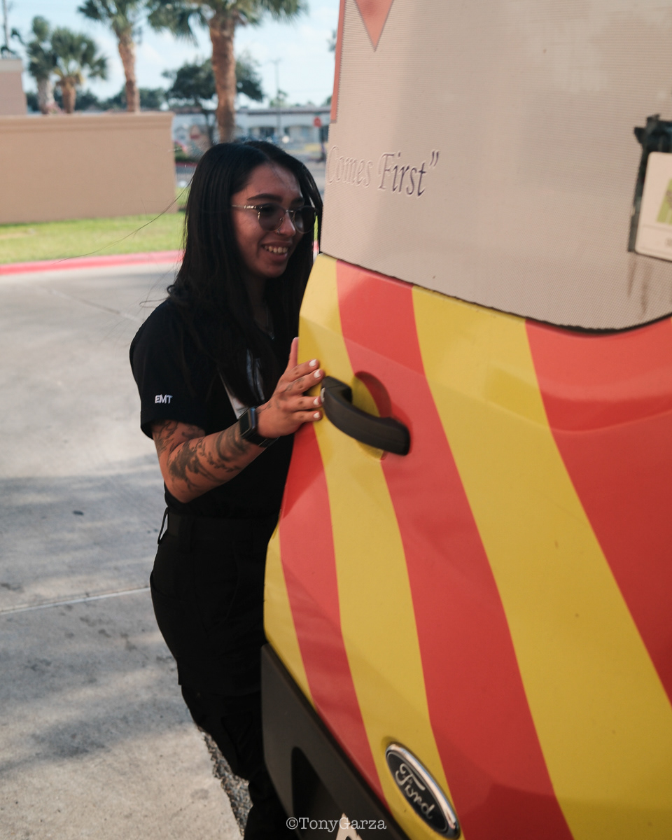R. De La Garza, Paramedic, with 4 years of EMS service.
