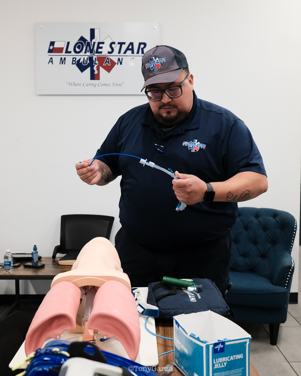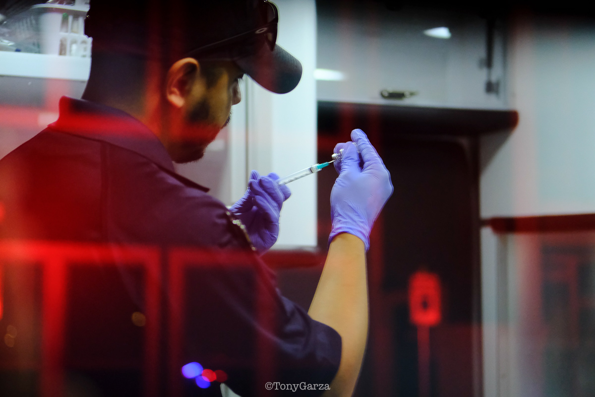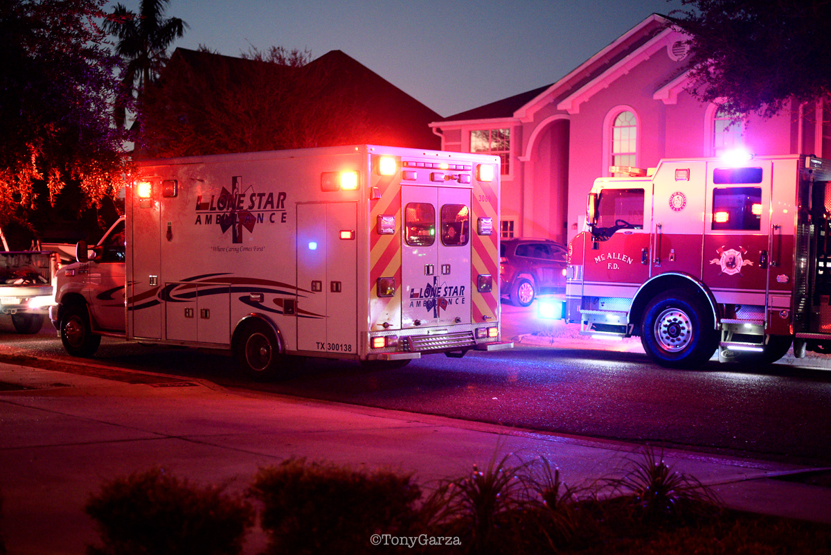 Medic 1 (Paramedic J. Anderson, EMT R. Longoria and EMT student A. Chaparro (first ride out, second arrest)), along with Rescue 1 (Supervisor/Paramedic A. Garcia), and McAllen FD, responded to a cardiac arrest. The crew intubated, established IV access, and administered cardiac medications on scene and en route. ROSC was achieved at the hospital. Great teamwork.