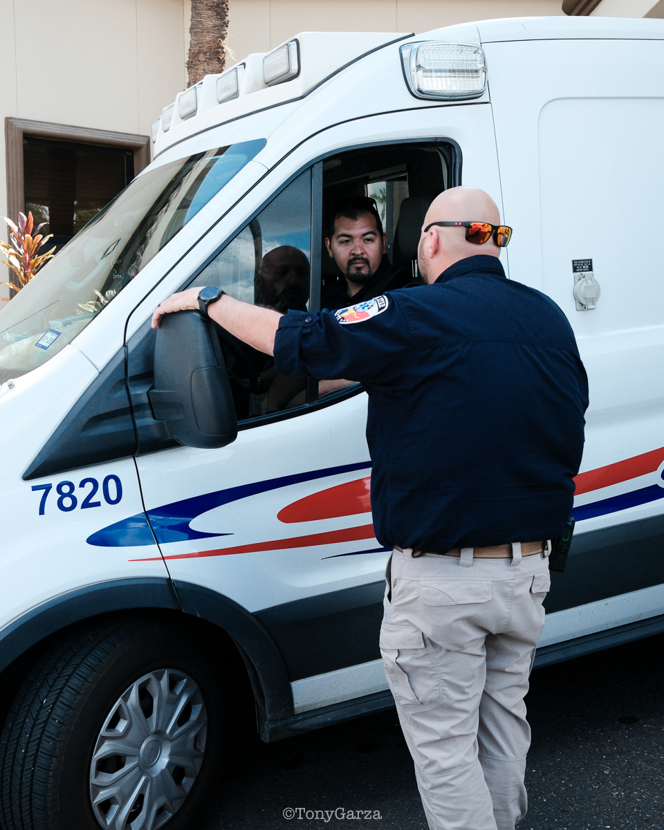 O. Espinoza, LSA supervisor and paramedic, exits the unit after assisting Medic 7 with a critical call. Any additional assistance simply increases the chances for the patient. It’s not about ego, pride, title, or rank. Teamwork is dream work! So others may live.