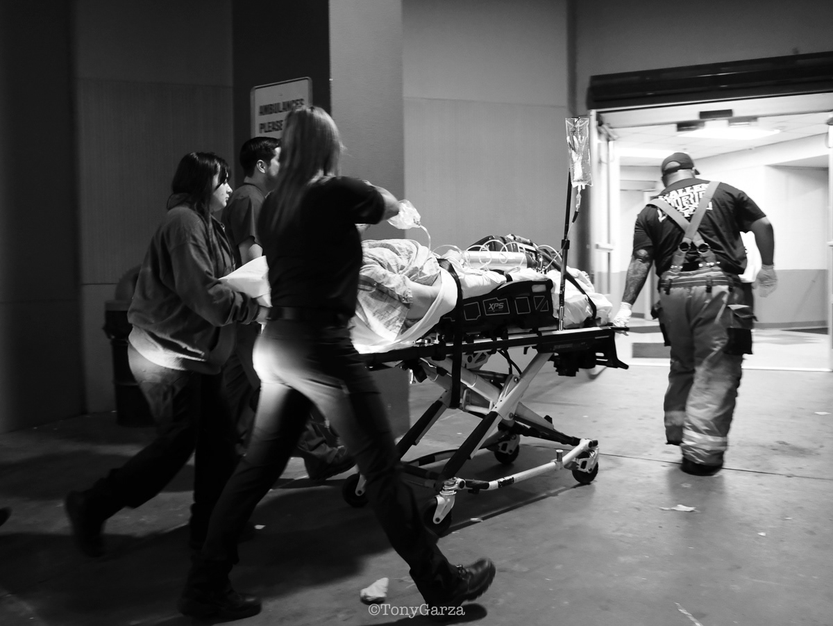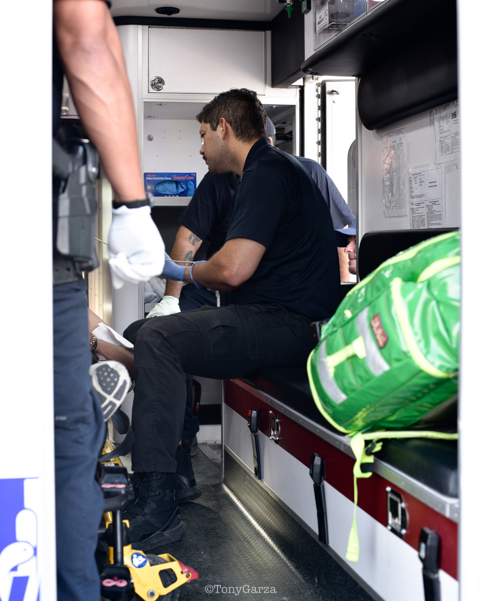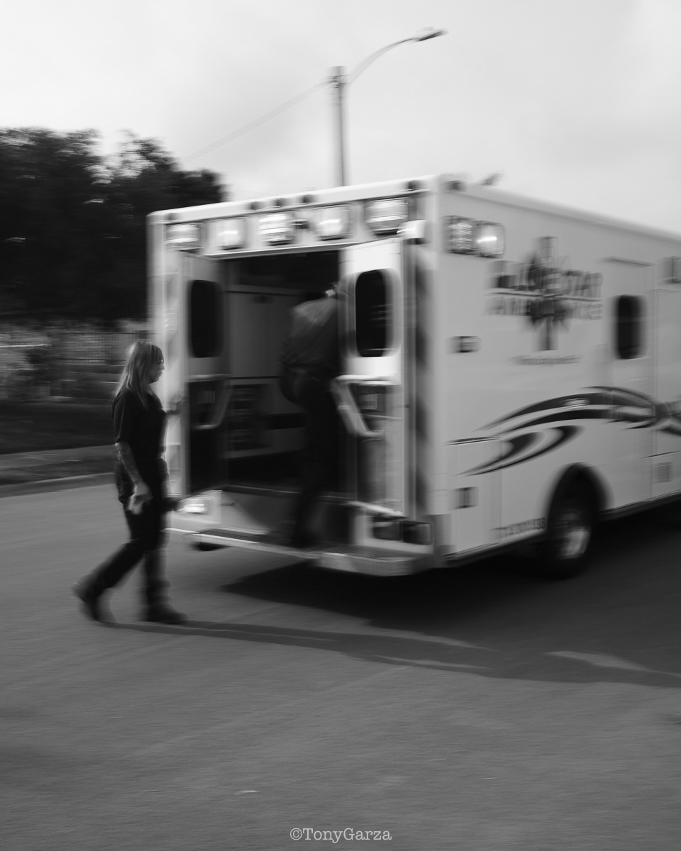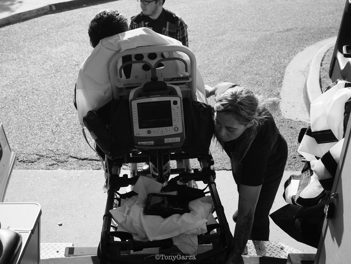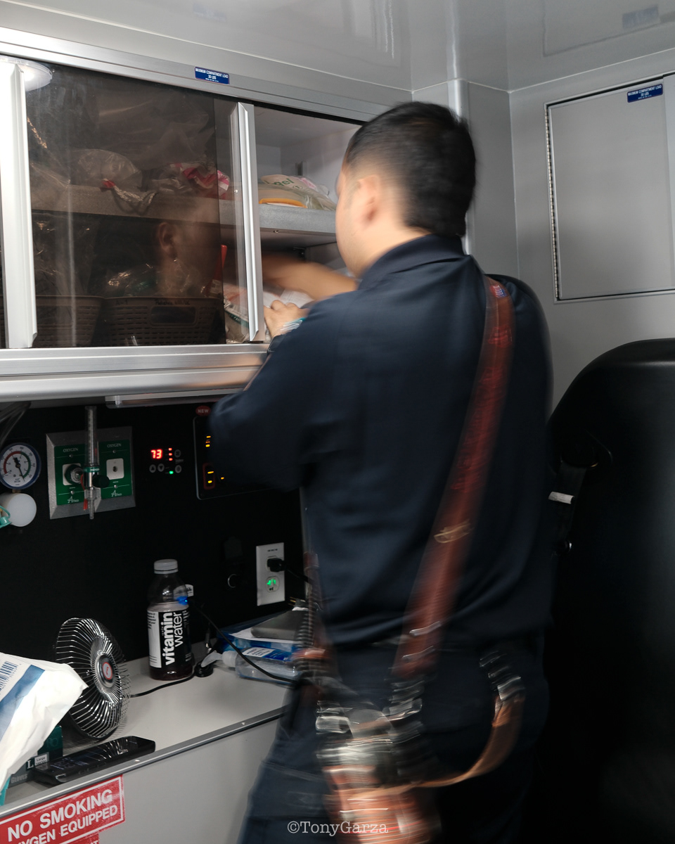(second photo) O. Espinoza, supervisor and paramedic, exits the unit after assisting Medic 7 with a critical call. Any additional assistance simply increases the chances for the patient. It’s not about ego, pride, title, or rank. Teamwork is dream work!