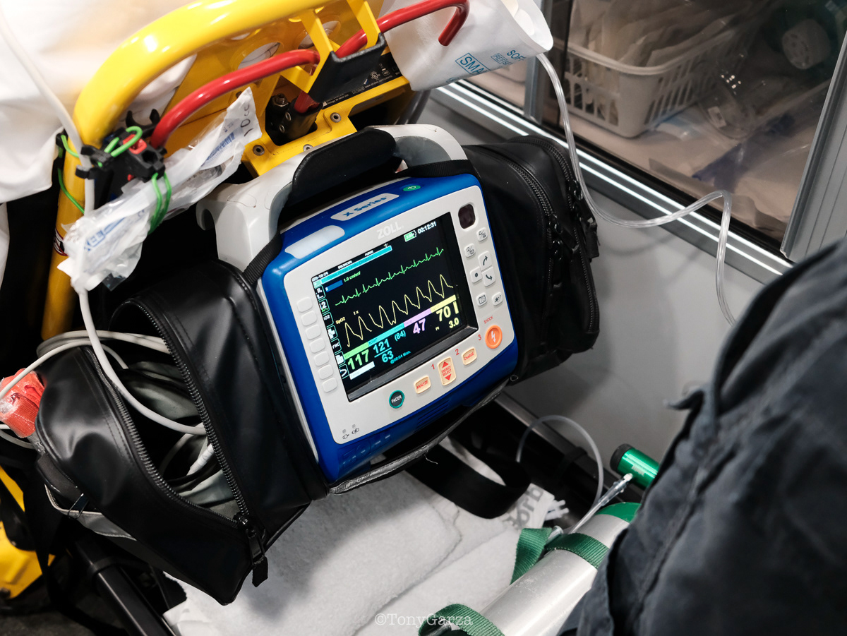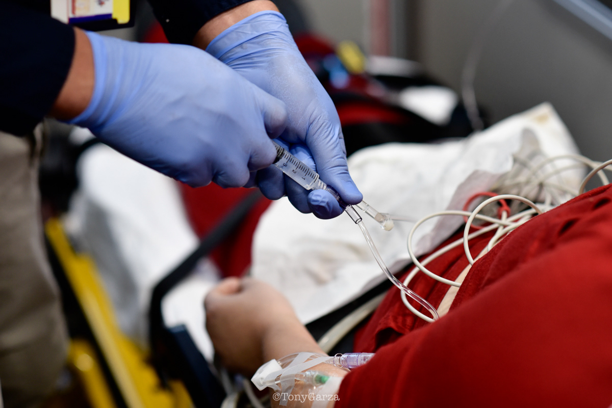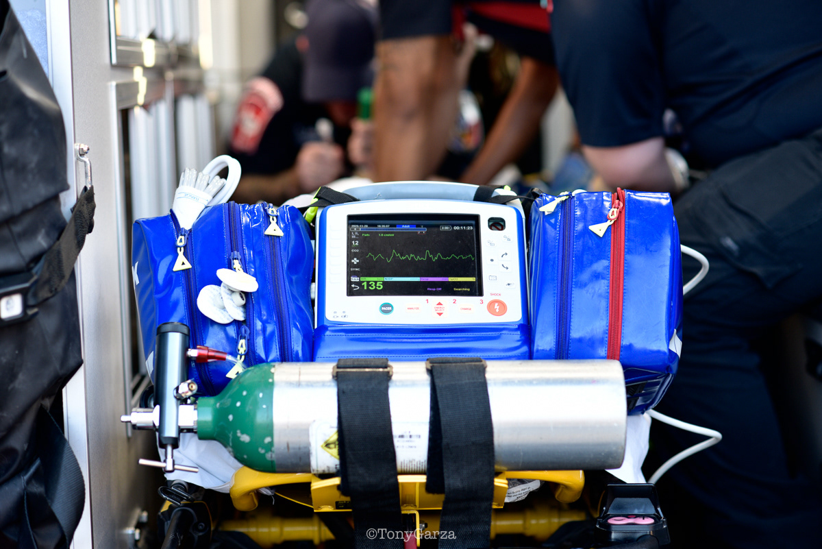 With a monitor, jump bag, and medication kit, care begins immediately on scene. IVs, medications, 12-leads, airway support, decompressions, tourniquets, and blood are provided as needed. Rescue 1 keeps the patient stable until a transport unit arrives.