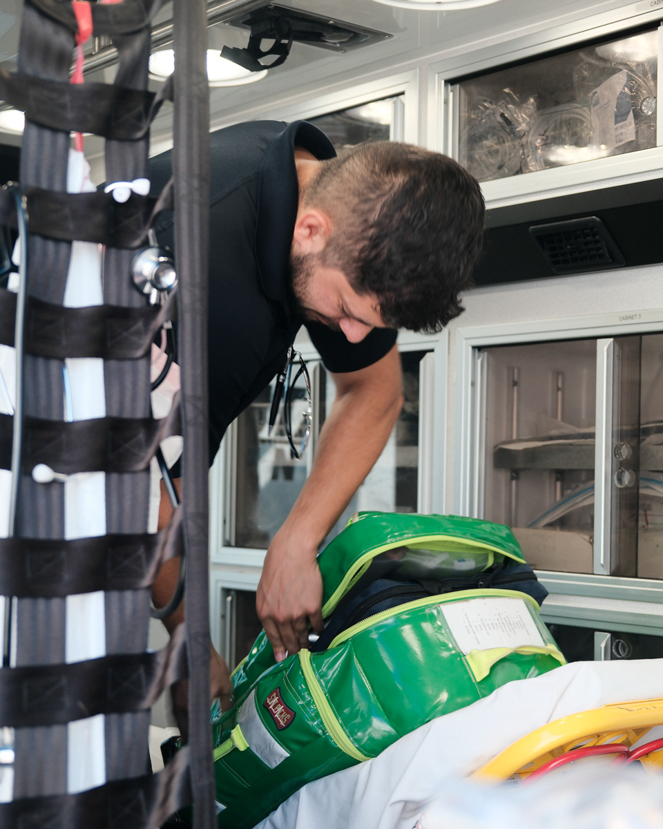 LSA medic 7, with the unit checked and supplies in hand, is ready for their 24-hour shift.
