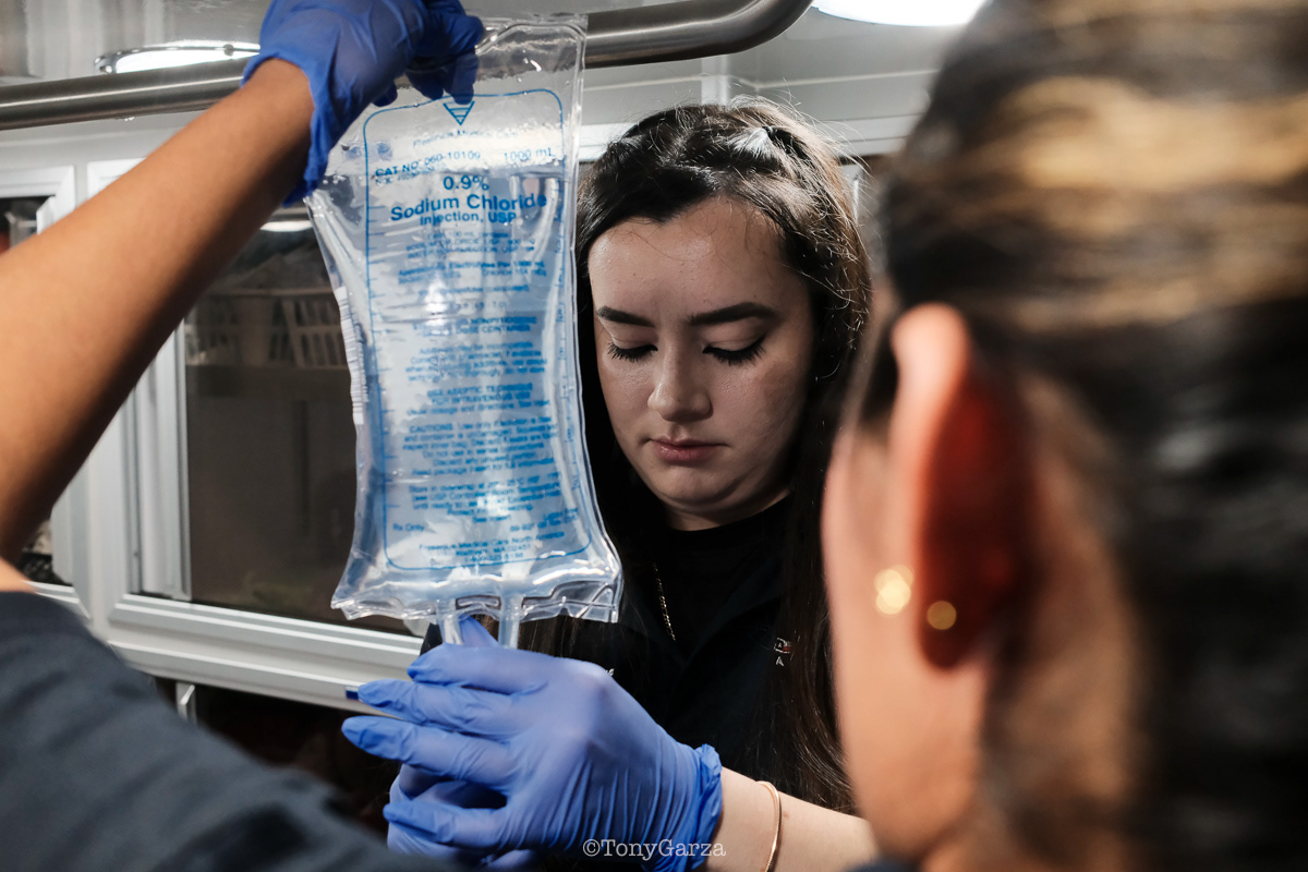 Once the patient was placed in the unit, Paramedic De La Garza performed a thorough yet rapid medical assessment and differential diagnosis, quickly identifying critical issues. She made sound clinical decisions and directed the team to initiate targeted interventions without delay, including obtaining vital signs, performing a 12-lead ECG, and establishing IV access, while she prepared the indicated antiemetic medication.